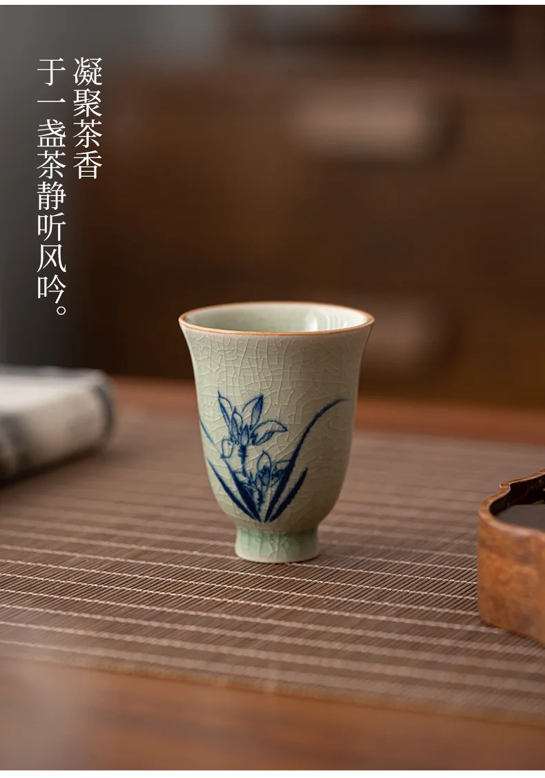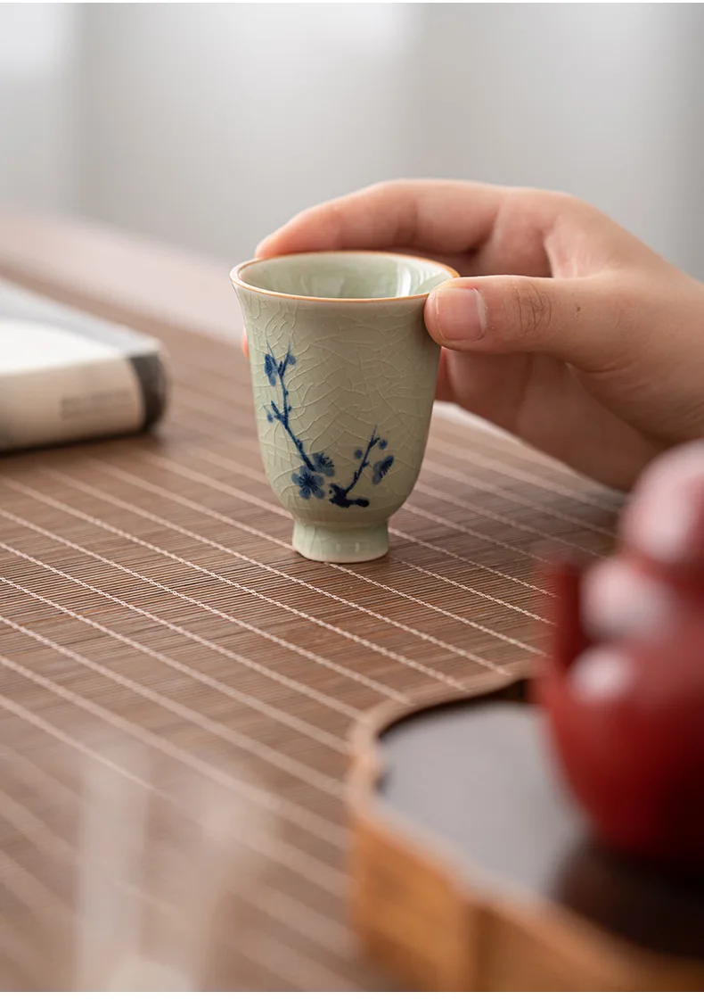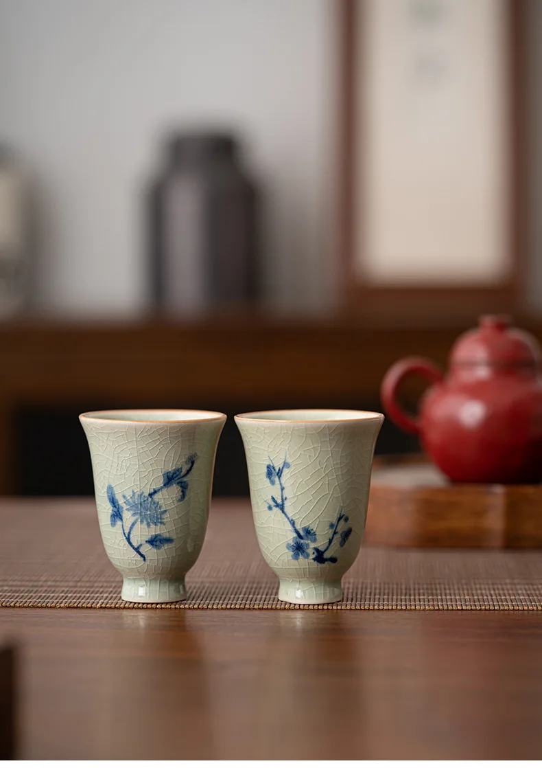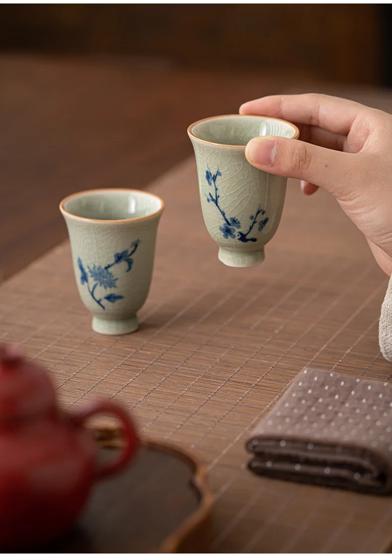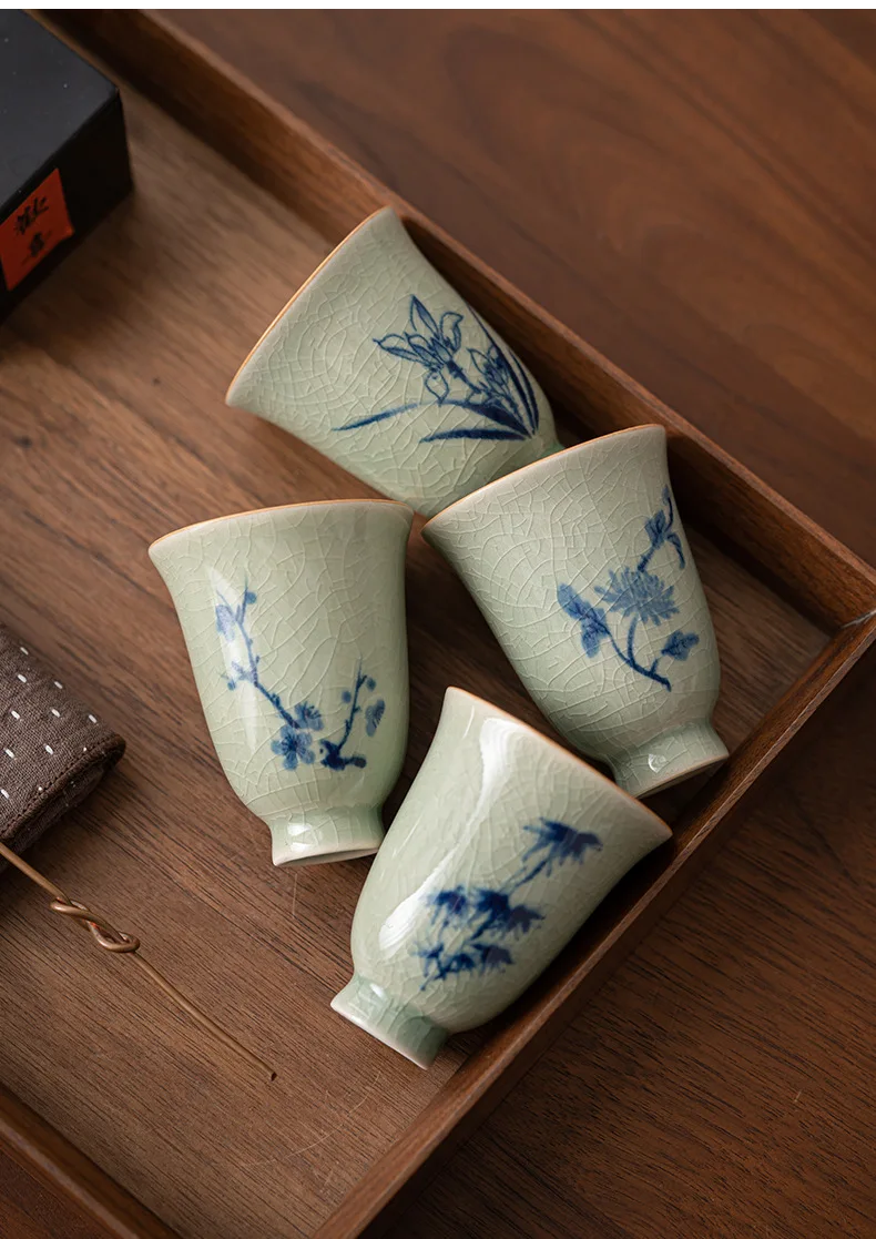 كوب شاي سيراميك صيني فاخر – تصميم زهرة الأوركيد، البامبو، الكريزانتيموم، والخوخ | مجموعة شاي فنية أصيلة للمطبخ والضيافة