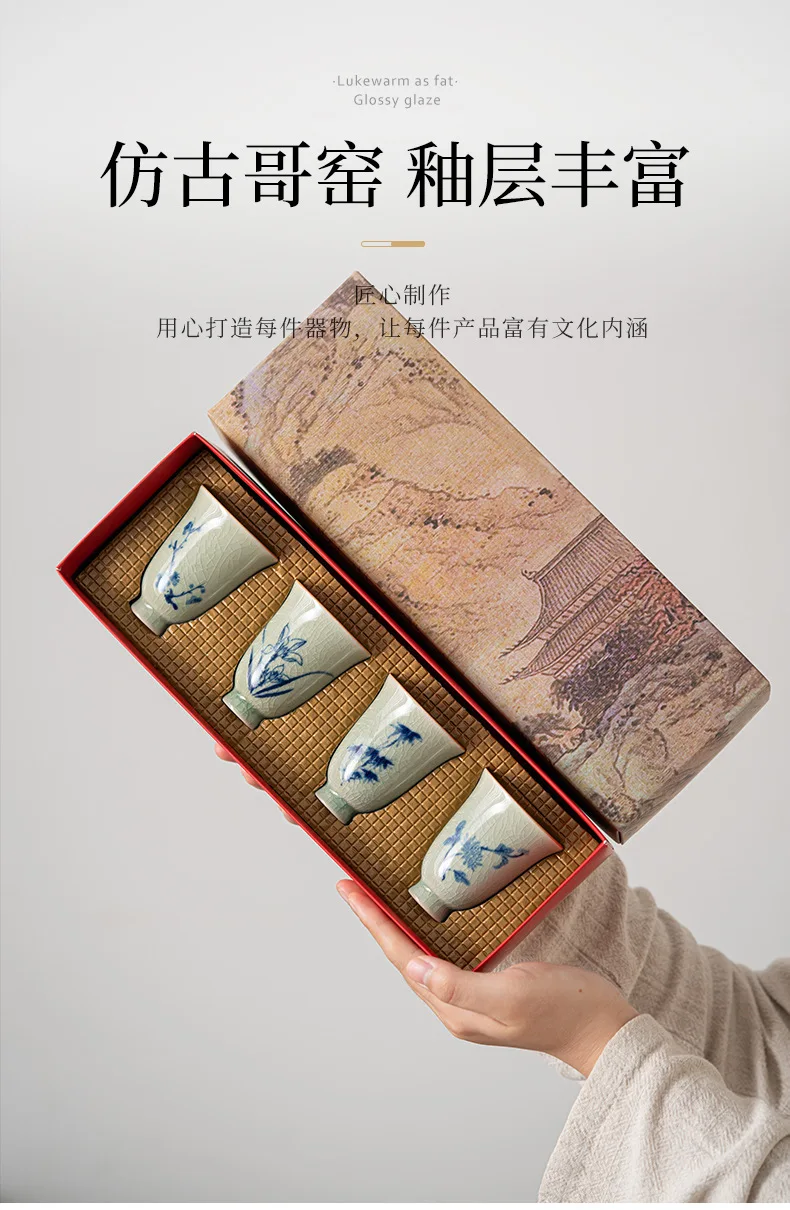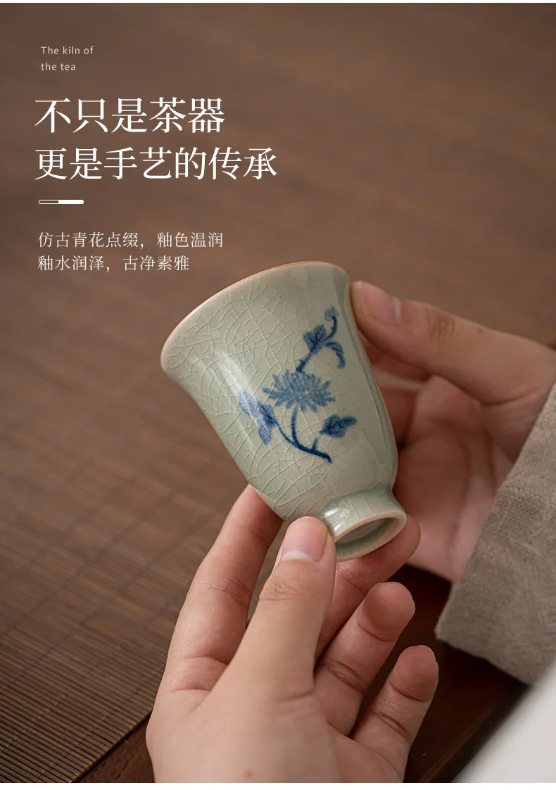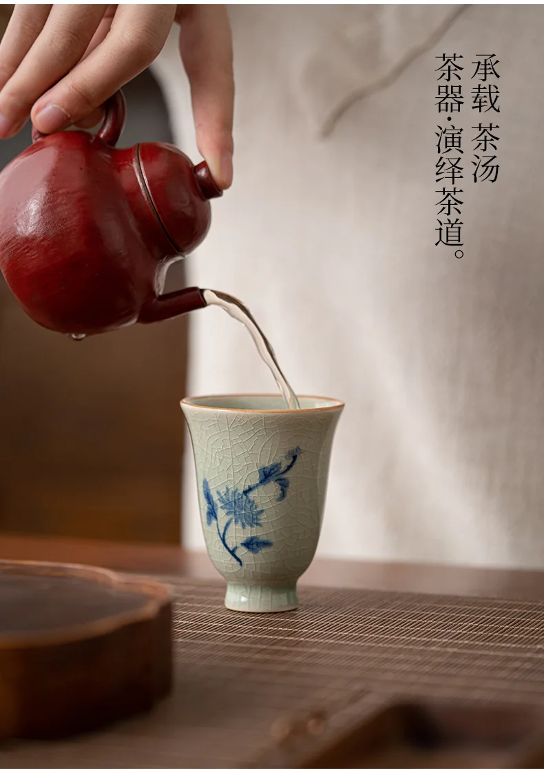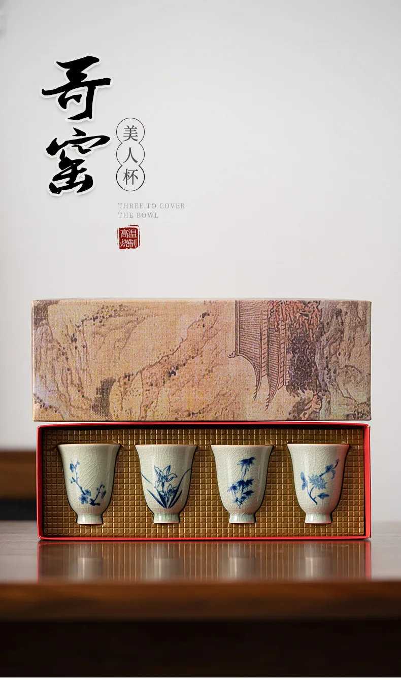 كوب شاي سيراميك صيني فاخر – تصميم زهرة الأوركيد، البامبو، الكريزانتيموم، والخوخ | مجموعة شاي فنية أصيلة للمطبخ والضيافة