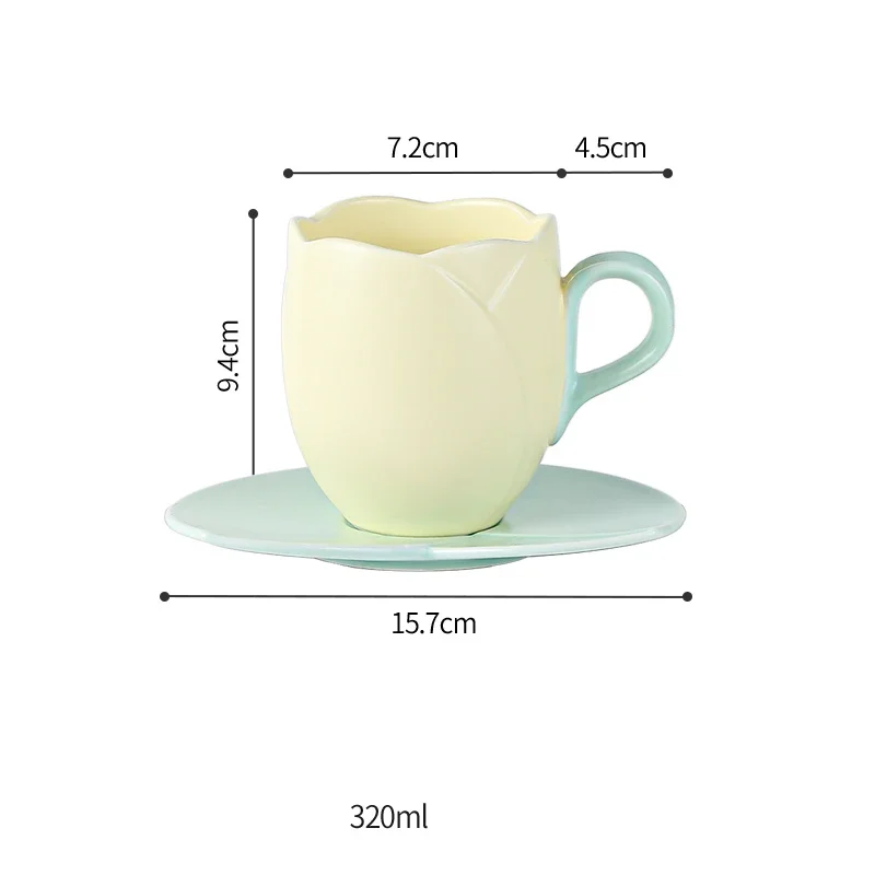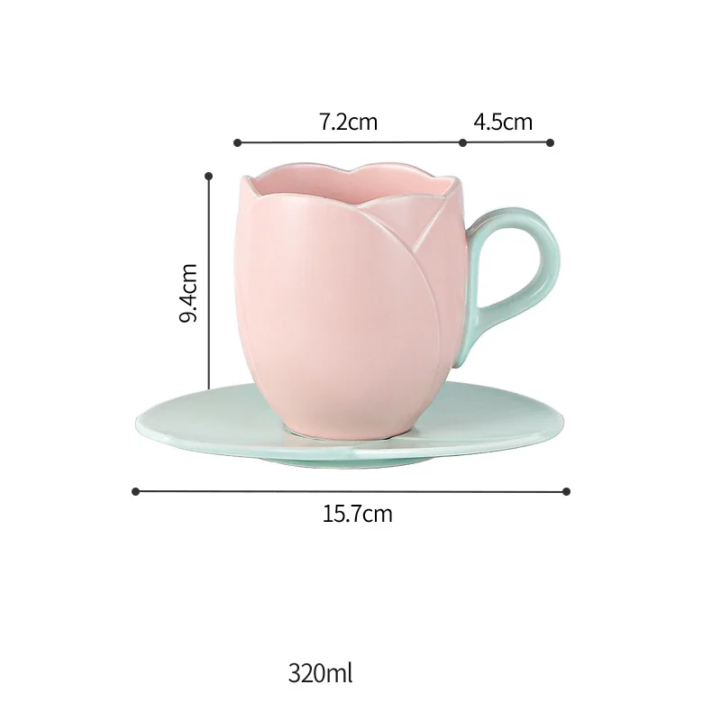 كوب قهوة سيراميك فاخر مع صحن – تصميم زهرة التوليب | 280مل / 320مل – مجموعة تقديم شاي ولاتيه أنيقة