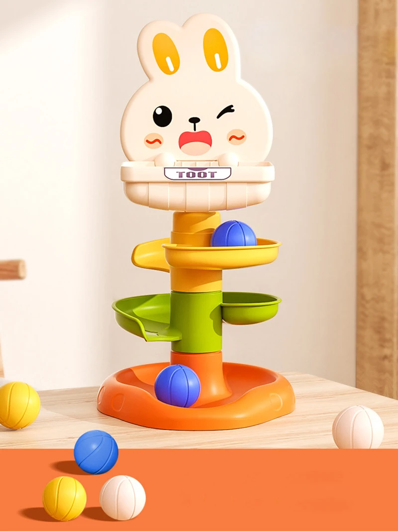 تشجيع التفكير المنطقي: يشاهد الطفل كيفية تحرك الكرات عبر المستويات المختلفة، مما ينمي فهمه للعلاقات المكانية والميكانيكية البسيطة