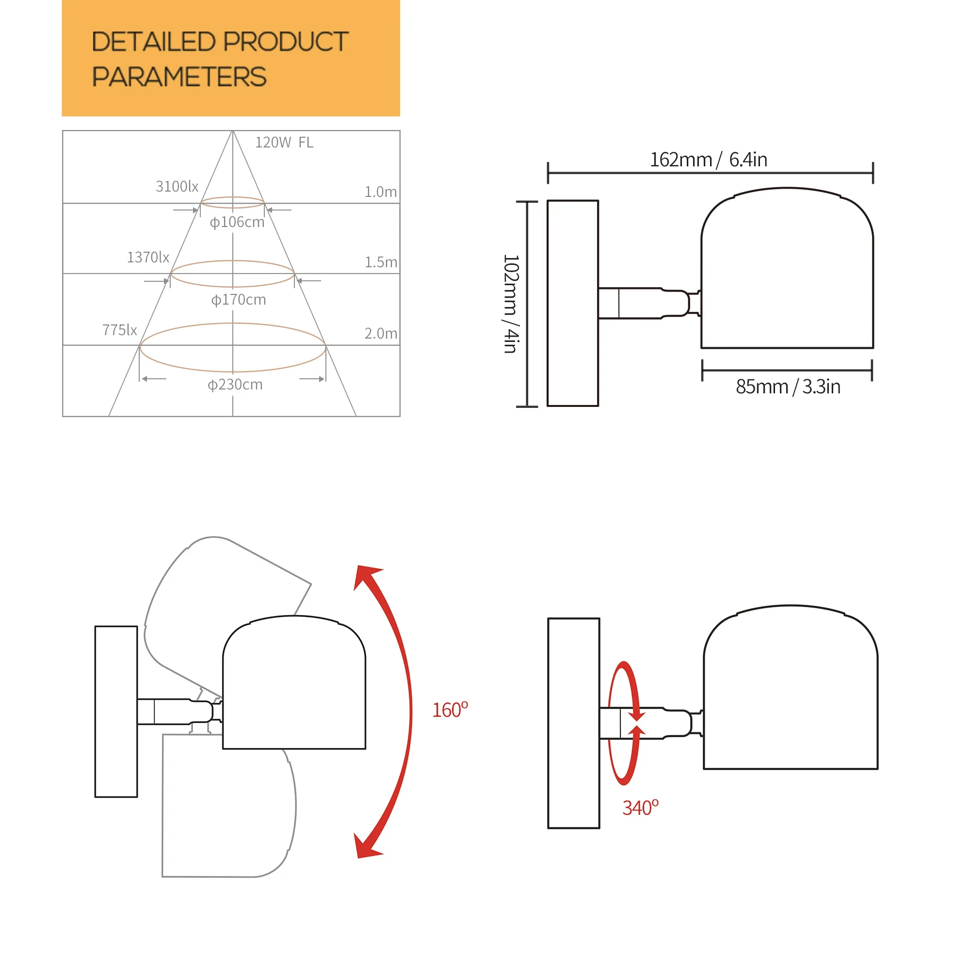 • تدفق ضوئي يغطي 3-5 متر مربع