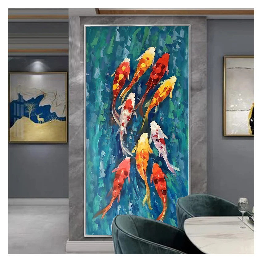 لوحة زيتية تجريدية لمنظر طبيعي لتسع أسماك كوي على قماش ملصق لغرفة المعيشة ديكور حديث صورة فنية جدارية