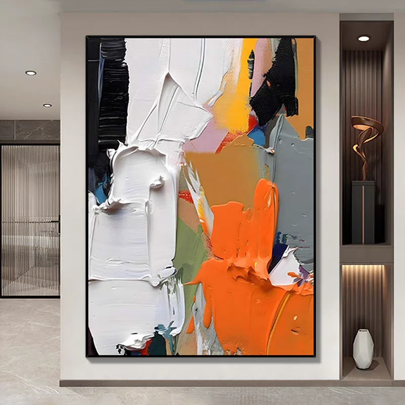 لوحة زيتية تجريدية مصنوعة يدويًا من قماش الكتان بدون إطار، لوحة فنية جدارية من قماش الأكريليك