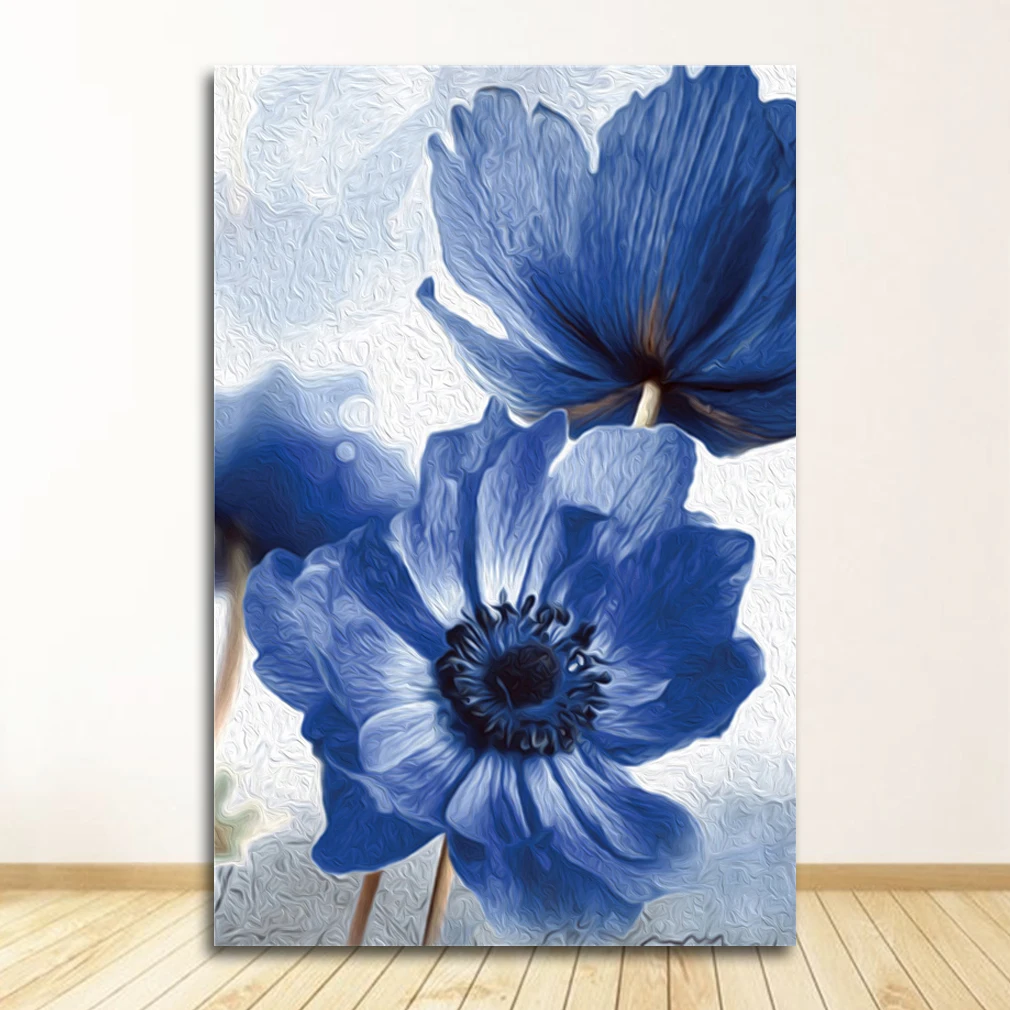 لوحة فنية مطبوعة على الحائط لغرفة المعيشة على الطراز الاسكندنافي، ملصق زهور زرقاء جميلة