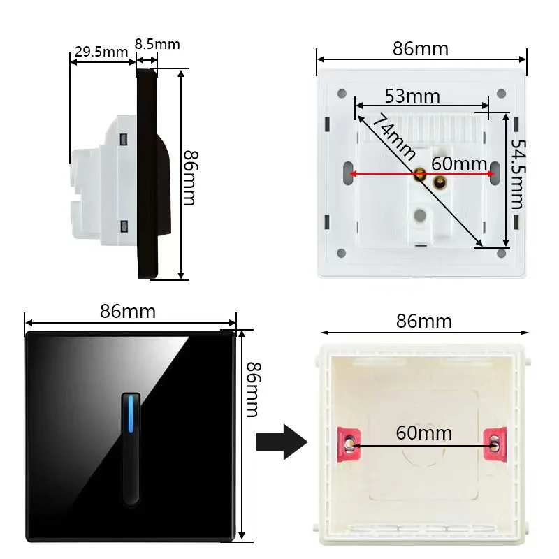 تركيب سهل وسريع: مصممة للتركيب في الصناديق القياسية (86×86مم) مع توصيلات واضحة.