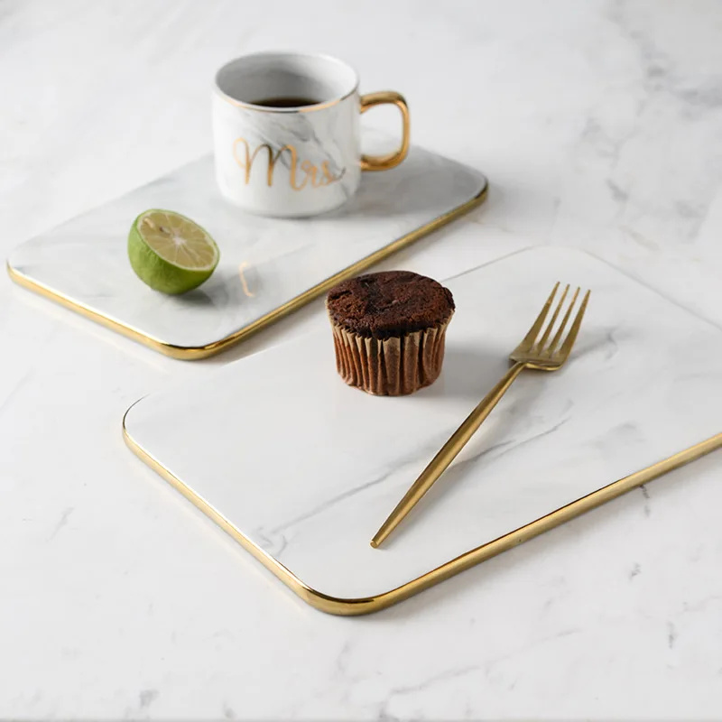 لوح تقطيع وتقديم من السيراميك الرخامي مع حواف ذهبية | فاخر، عملي، ومناسب لكل المناسبات – أدوات مطبخ 2024