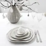 🔹 الخامات: صُنعت مجموعة الأطباق من خزف عالي الجودة يجمع بين الخفة والفخامة، وتضمن لك استخدامًا طويل الأمد بدون تشوه أو تشقق.
