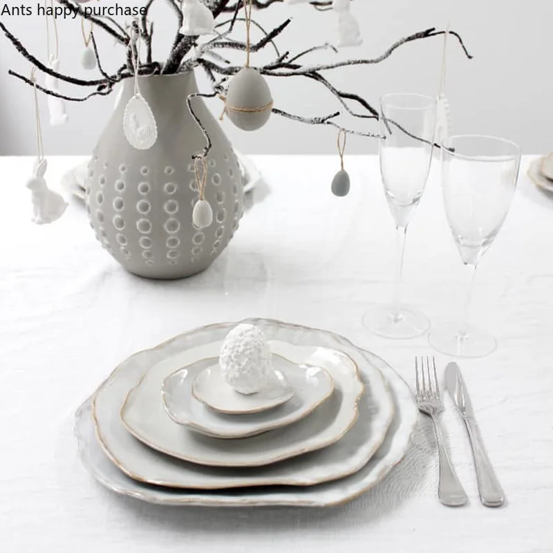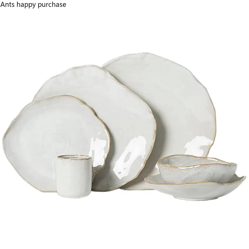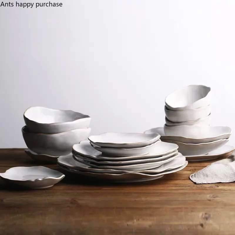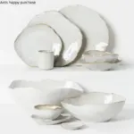 مجموعة أطباق خزفية غير منتظمة الشكل | لتقديم الأرز، الشوربة، الحلويات، والستيك