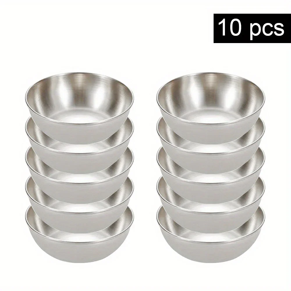 مجموعة صحنات استانلس صغيرة 10 قطع – مناسبة للصلصات، التوابل، الحلويات والمقبّلات 🥇🍽️✨