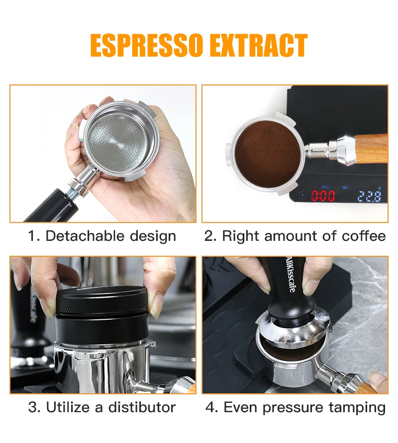 - تصميم بدون قاع : يمنحك رؤية مباشرة لاستخلاص القهوة، وتحكم أفضل في النتيجة