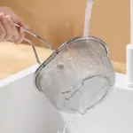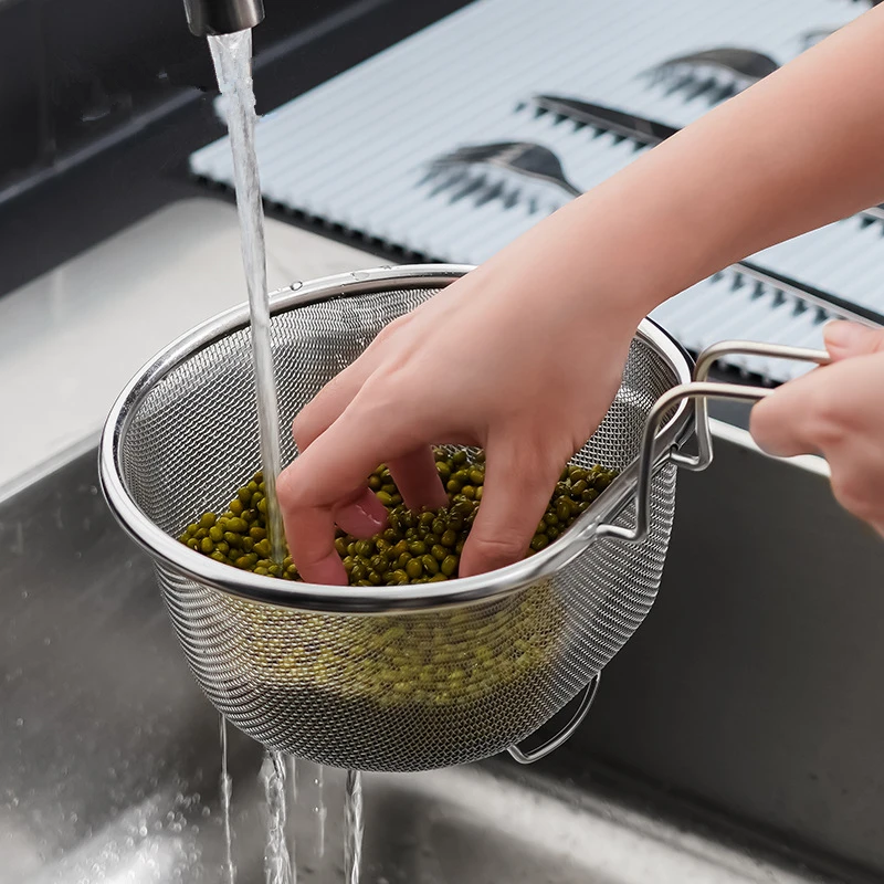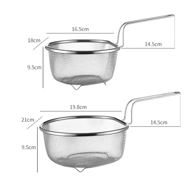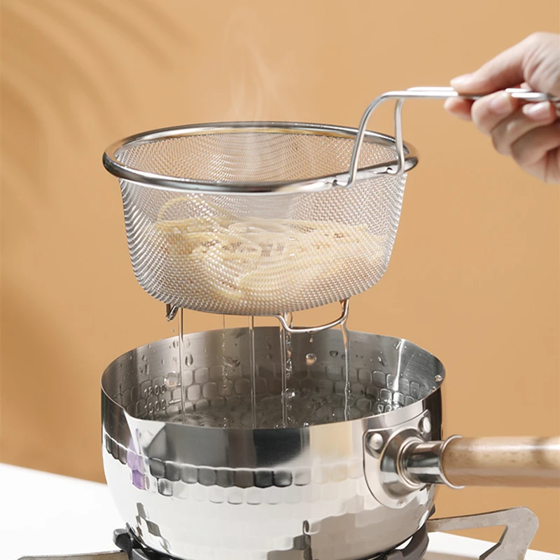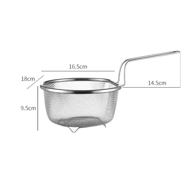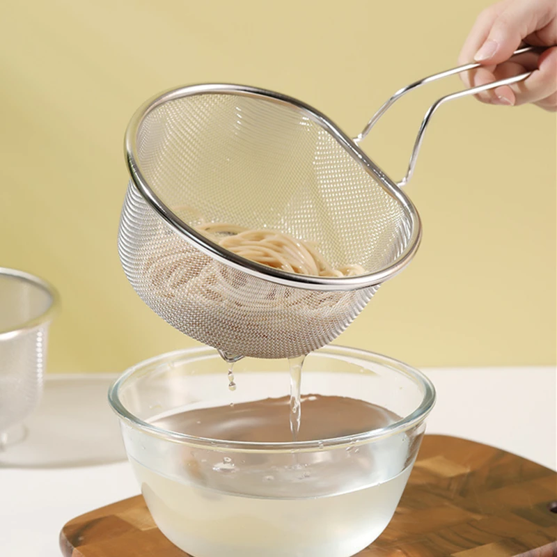 مصفاة ستانلس ستيل – مصفاة طعام متعددة الاستخدامات – أدوات مطبخ مقاومة للحرارة – مصفاة زيت البطاطس – غربال دقيق للمعجنات – أدوات مطبخ منزلية – مصفاة طعام آمنة للصحة – مصفاة مع مقبض طويل – أدوات مطبخ عملية – مصفاة ستيل عالية الجودة