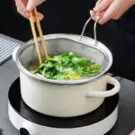 مقبض طويل ومريح – يحميك من الحروق أثناء الطهي أو التصفية.