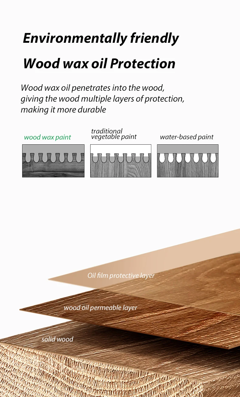 تصميم طبيعي فاخر: لوحة من الخشب الصلب الطبيعي المعالج بزيت الشمع، مقاوم للخدوش والغبار وسهل التنظيف.