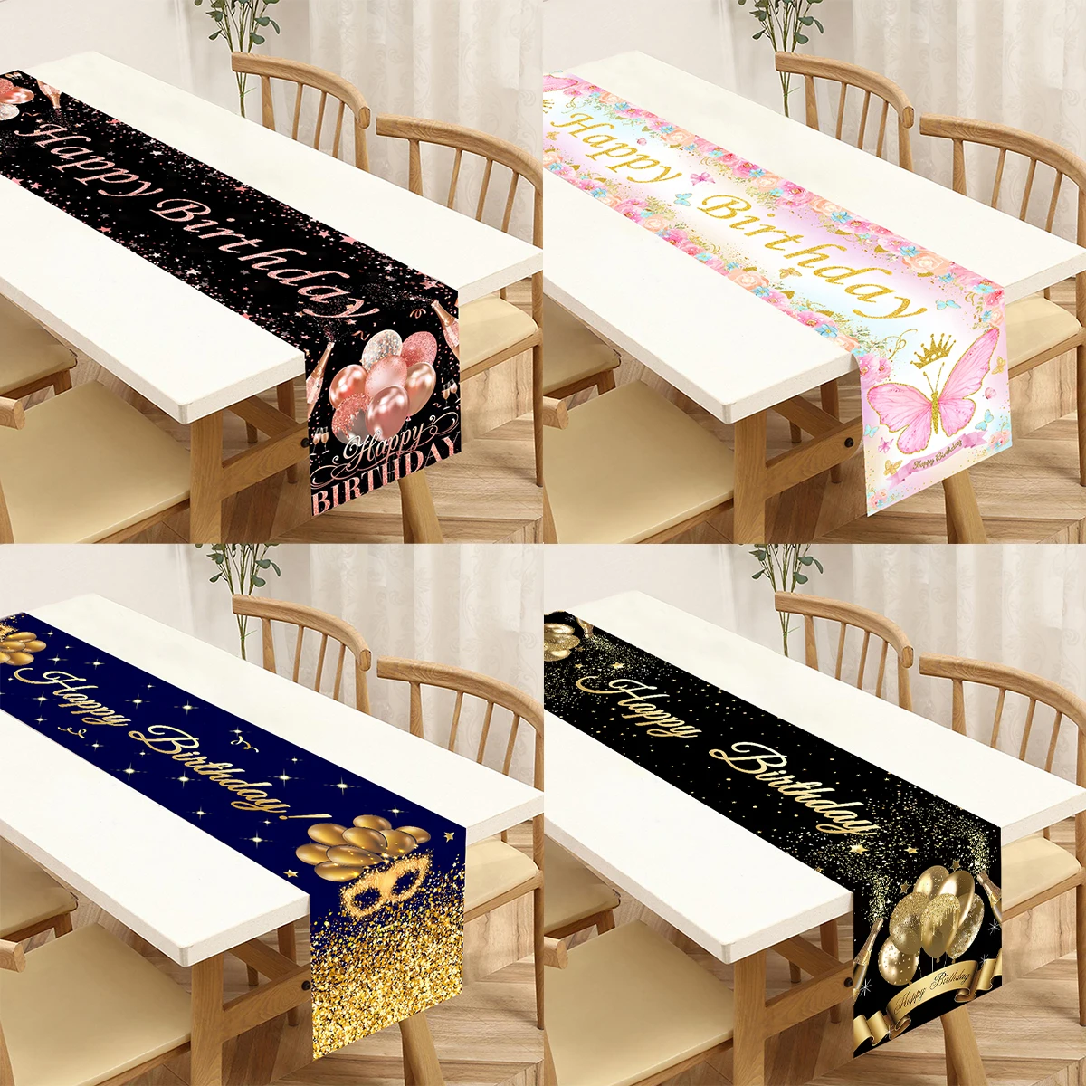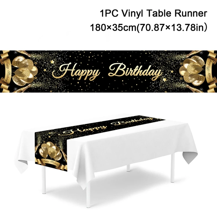 مفرش طاولة عيد ميلاد باللون الأسود الذهبي، زينة حفلات أعياد الميلاد السعيدة للأطفال والكبار، ديكور طاولة المنزل لعيد الميلاد الأول