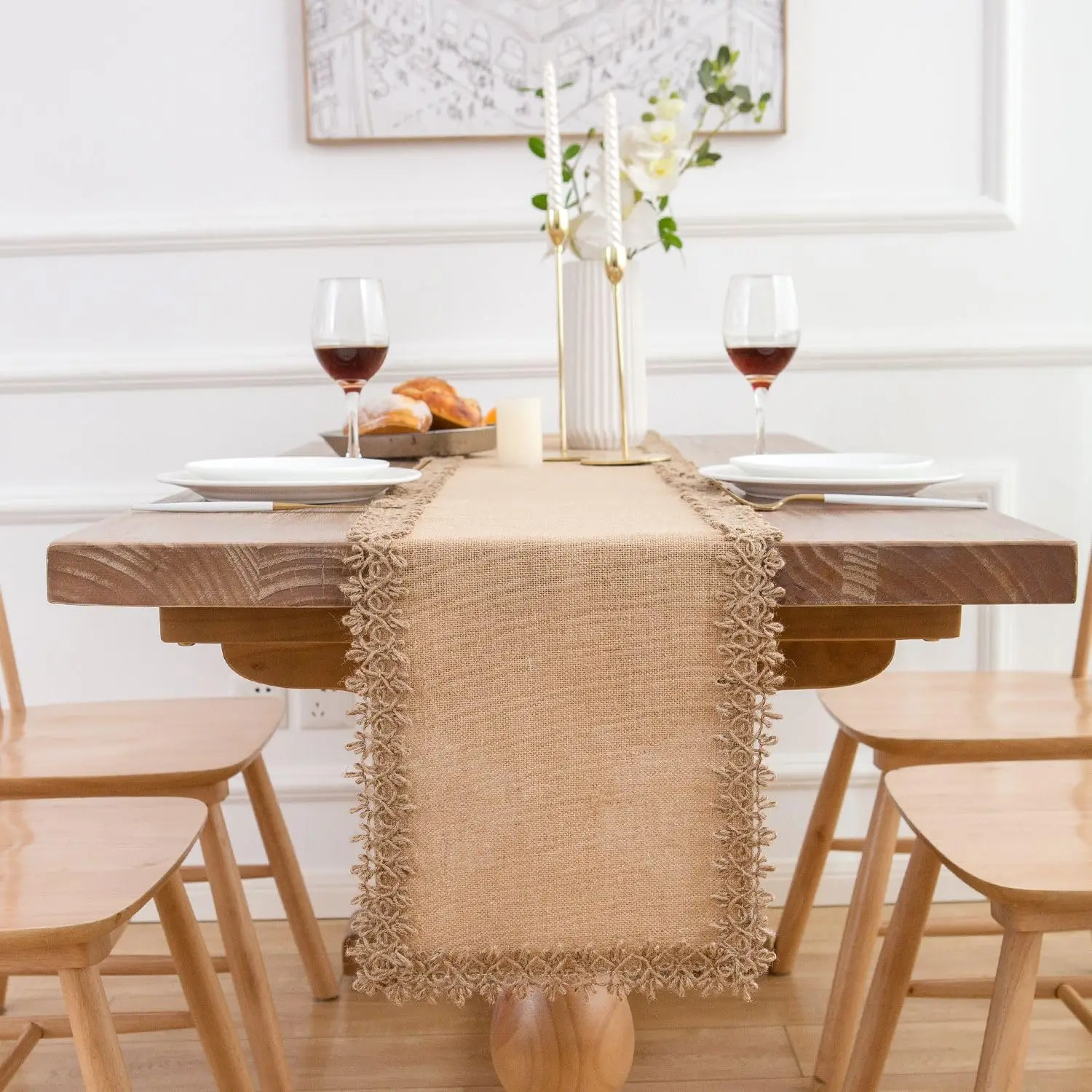 مفرش طاولة من الخيش الخيشي العتيق من الجوت الطبيعي لحفلات الزفاف وديكور طاولة المنزل في عيد الميلاد