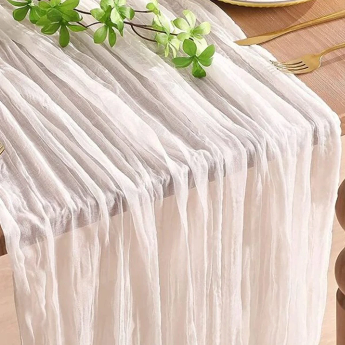 مفرش طاولة من الشاش شبه الشفاف، قماش شاش أبيض، ديكور طاولة، غرفة طعام، ديكور زفاف عتيق، حفلات ولائم، أقواس، ديكور بوهو عتيق