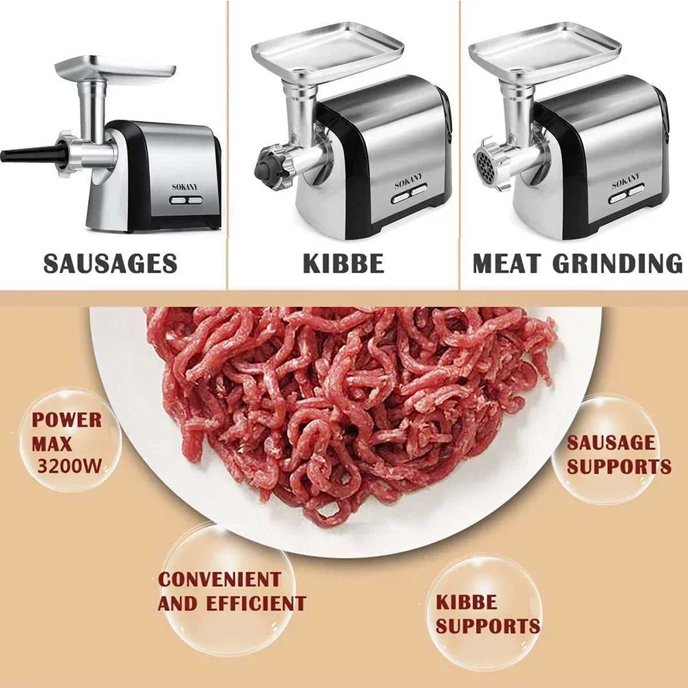 مفرمة لحمة كهربائية ستانلس ستيل – مناسبة للمنزل والعمل | آلة حشو السجق + فرم دقيق للمحترفين والمستهلكين