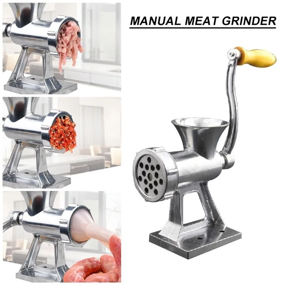 مفرمة لحم يدوية من سبائك الألومنيوم مع كرنك وقاعدة تثبيت على الطاولة – أداة مطبخ منزلية