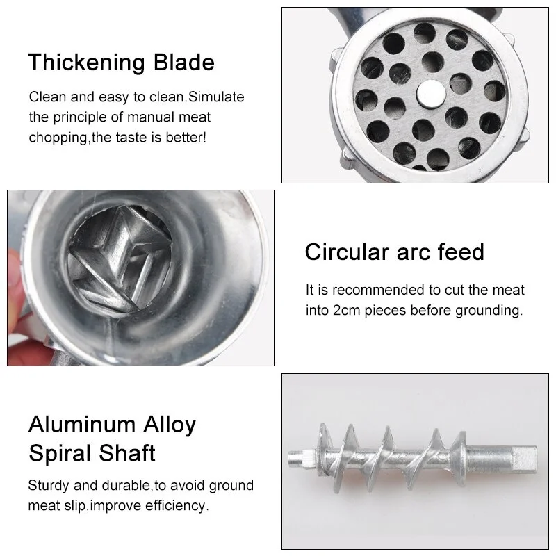 - استخدامات متعددة: ليست فقط لمفرمة اللحم، بل يمكن استخدامها أيضًا لصنع السجق، الكبة، الهبر، شرائح الخضار، الحشوات، والمقرونة.