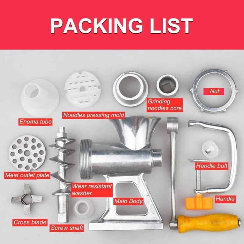 مفرمة لحم يدوية عالية الأداء مصنوعة من مادة ألومنيوم صب ضغطي فائقة الجودة، بقطر صفيحة اللحم 6 سم، تُعتبر خيارًا مثاليًا لتحضير اللحوم بأنواعها بطريقة سهلة وفعّالة. بفضل تصميمها العملي واليدوي، تناسب هذه المفرمة كل احتياجات المطبخ المنزلي وحتى المطاعم الصغيرة.