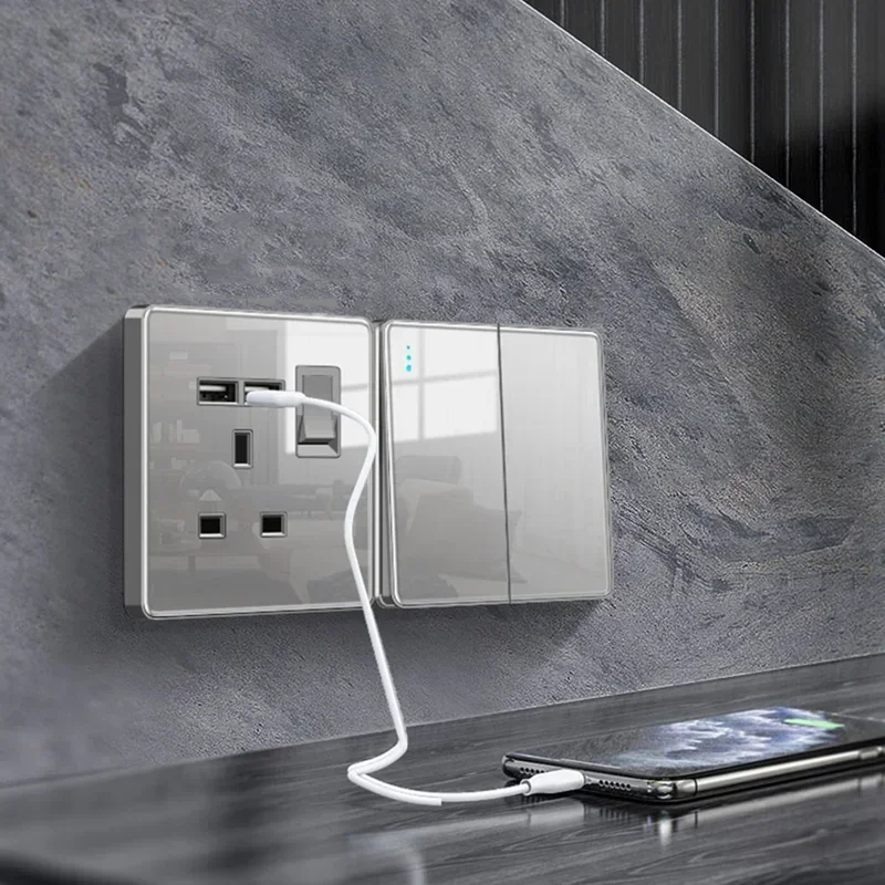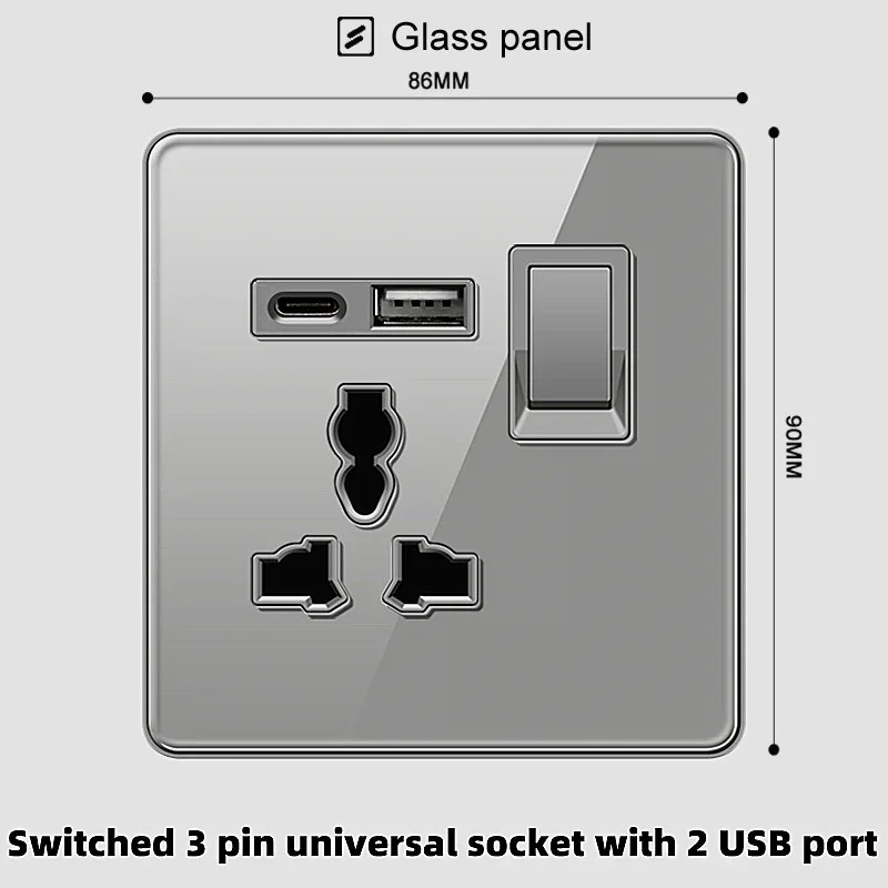 تمتع بأناقة عصرية وأداء متميز مع مقبس الحائط الزجاجي البريطاني المتطور! هذا المنتج الفاخر يجمع بين جمال الزجاج المقوى ومتانة التصميم البريطاني، ليقدم لك حلاً كهربائياً أنيقاً وآمناً. مثالي للمنازل العصرية، المكاتب الفاخرة، والفنادق الراقية التي تبحث عن الدقة والجمال في التفاصيل.