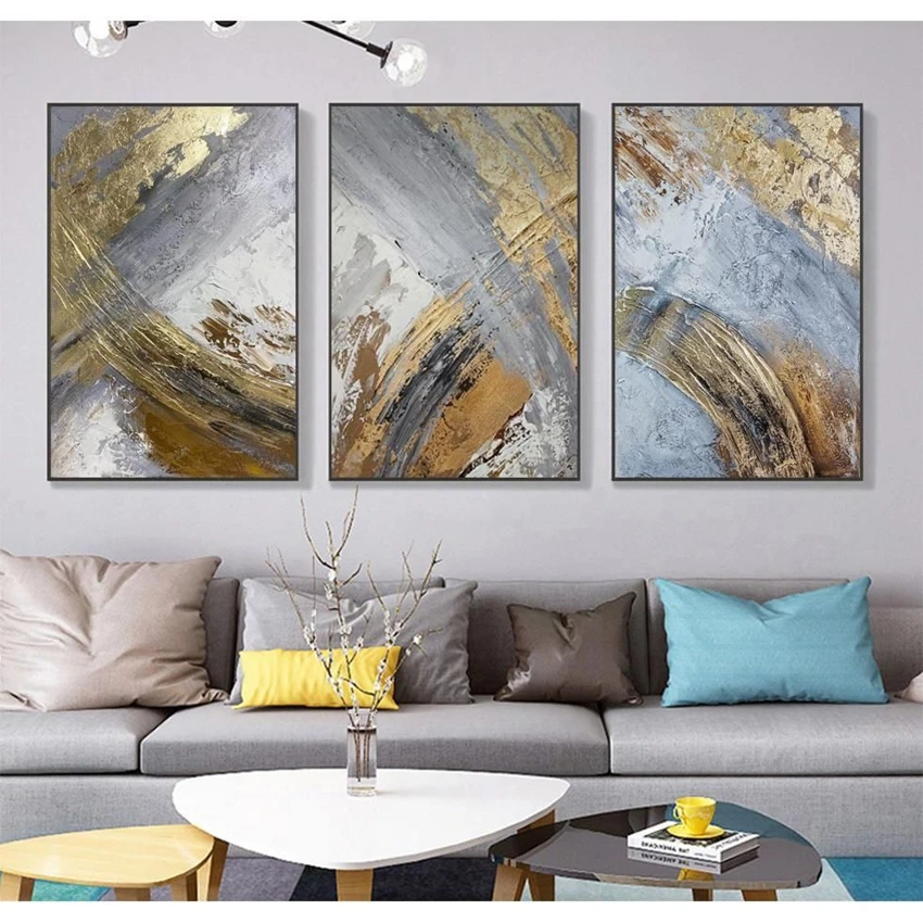 ملصق صالون ديكور حديث على الحائط، لوحة زيتية تجريدية مرسومة يدويًا على قماش بورق ذهبي