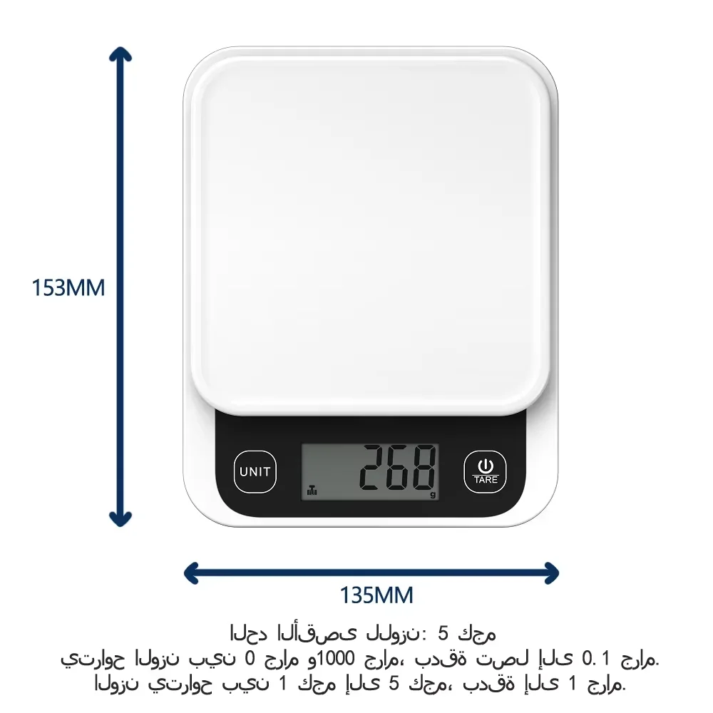 ميزان مطبخ ذكي – 5 كجم بدقة 0.1 جرام
