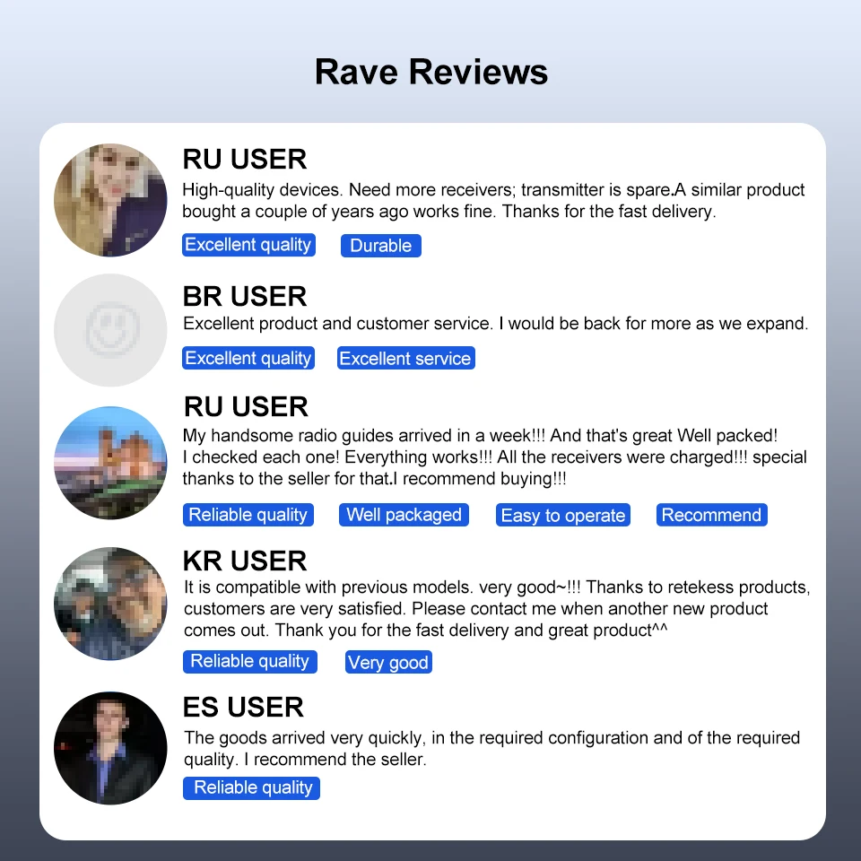 سماعات إسفنجية مجانية (ضعف عدد أجهزة الاستقبال)
