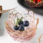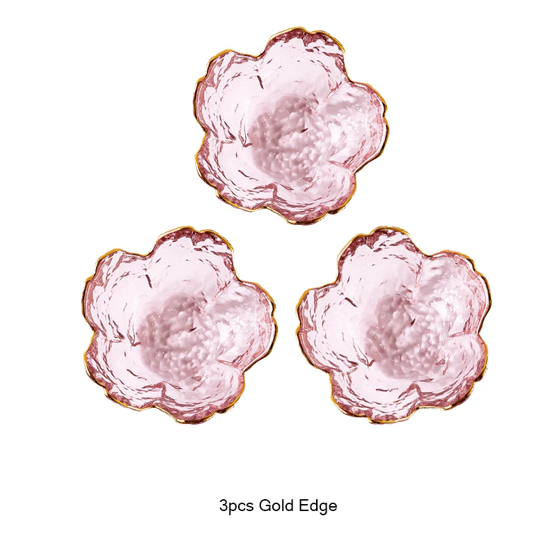 ٣ قطع أطباق صلصة بزخرفة زهر الكرز – أطباق زجاجية صغيرة بتصميم نورديقي فاخر مع نقش ذهبي 🥄✨