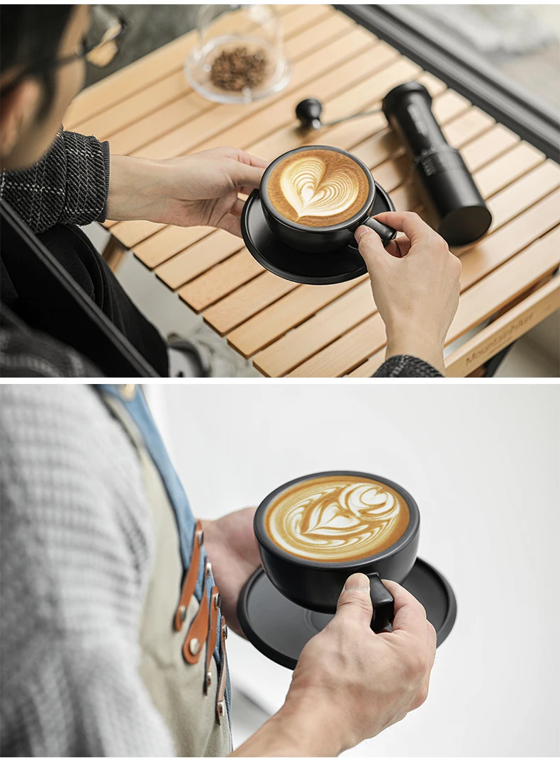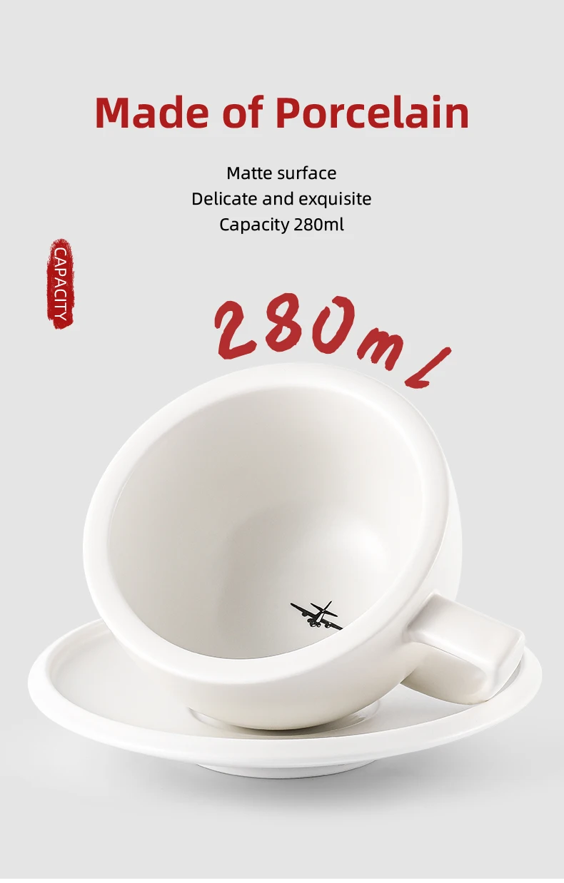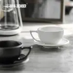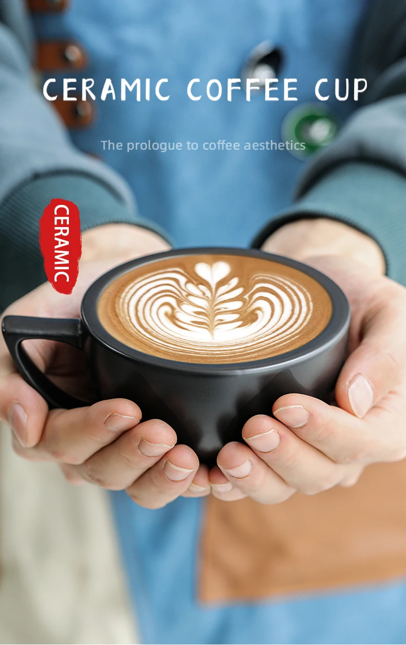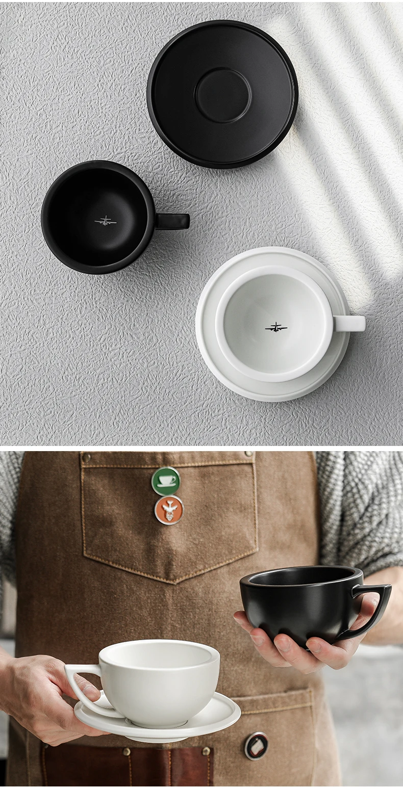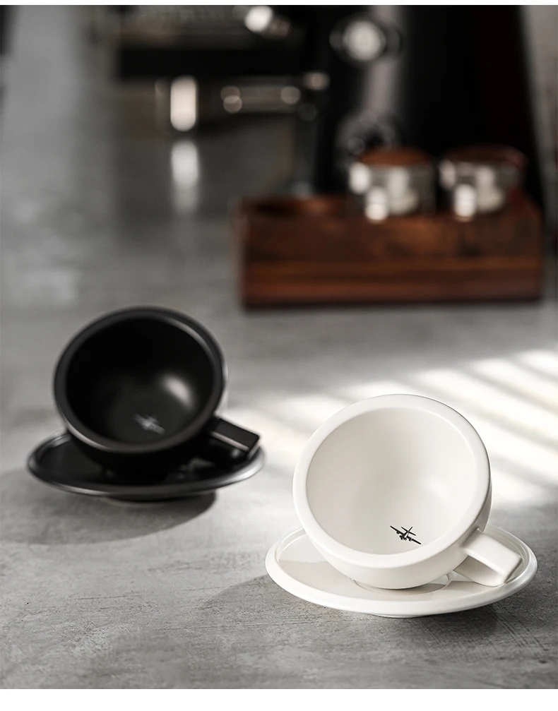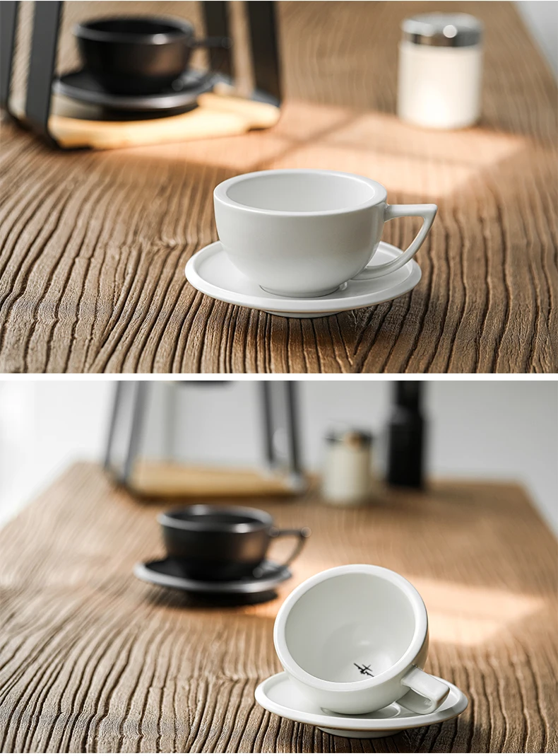 ☕ كوب قهوة سيراميك 280مل مع طبق – تصميم شيك لعشاق القهوة واللاتيه آرت
