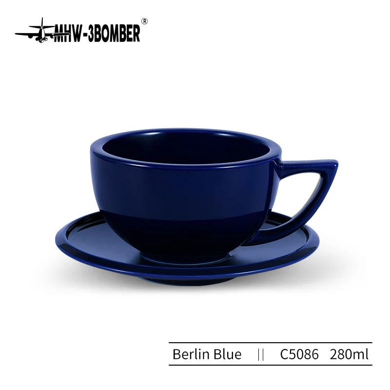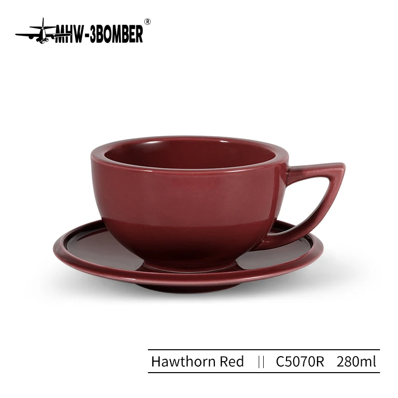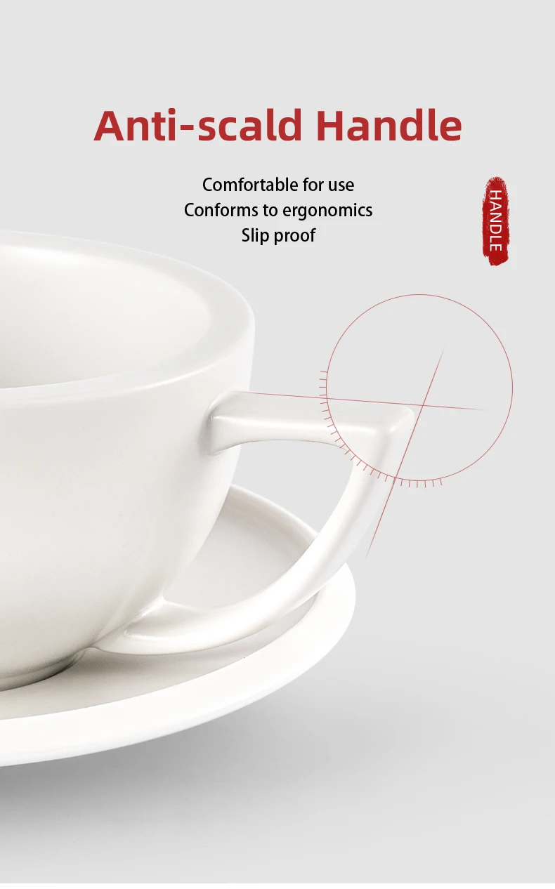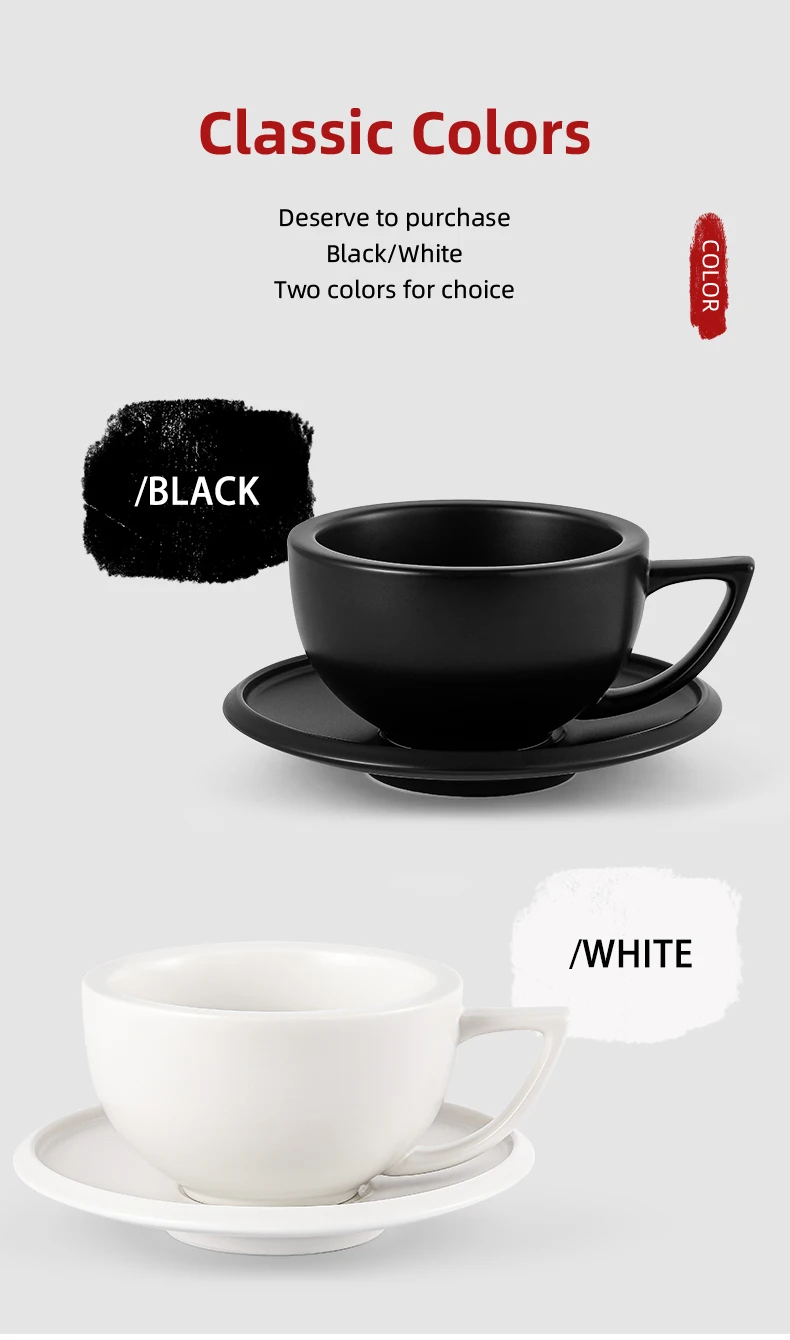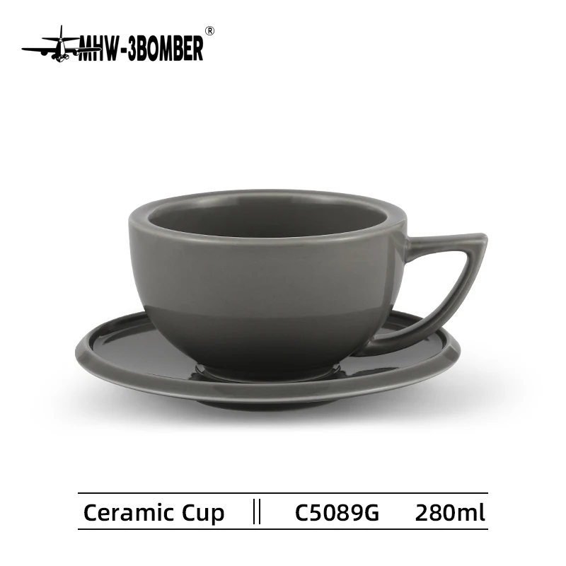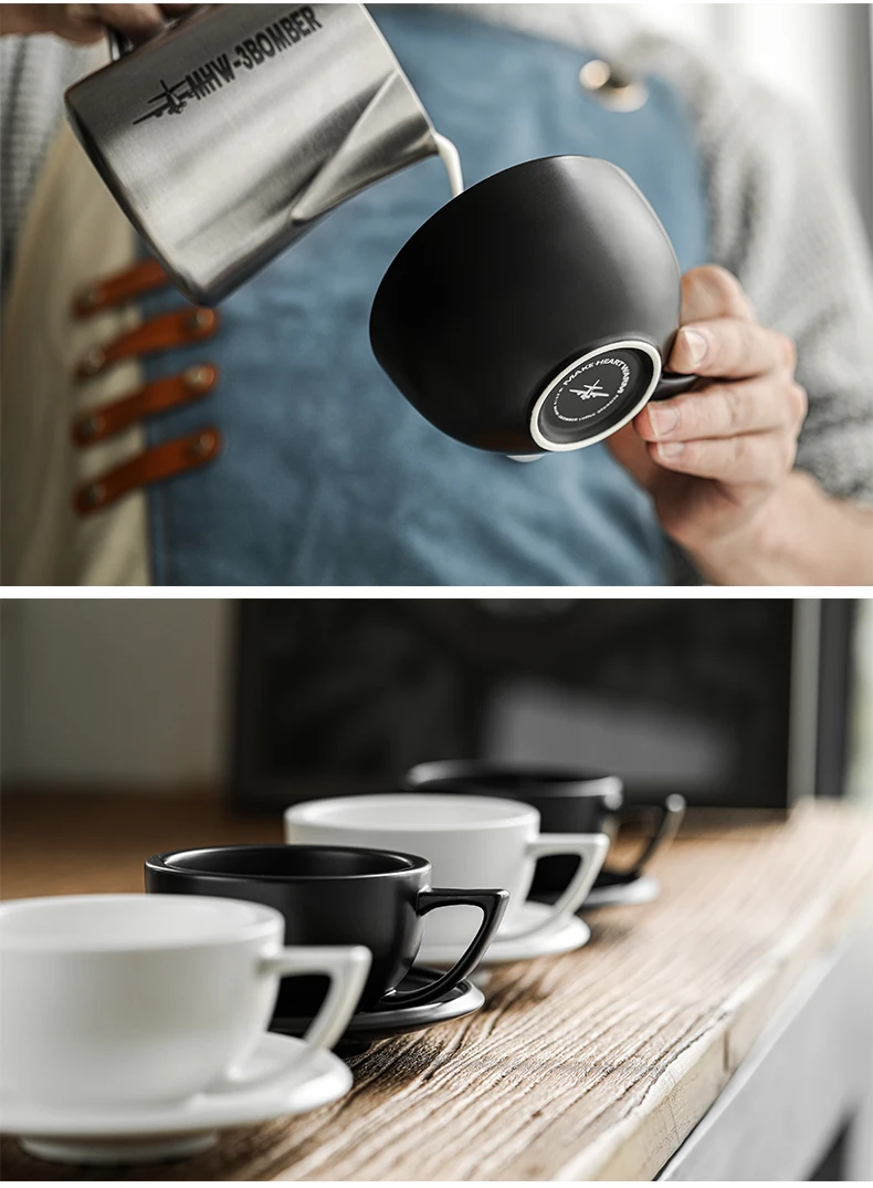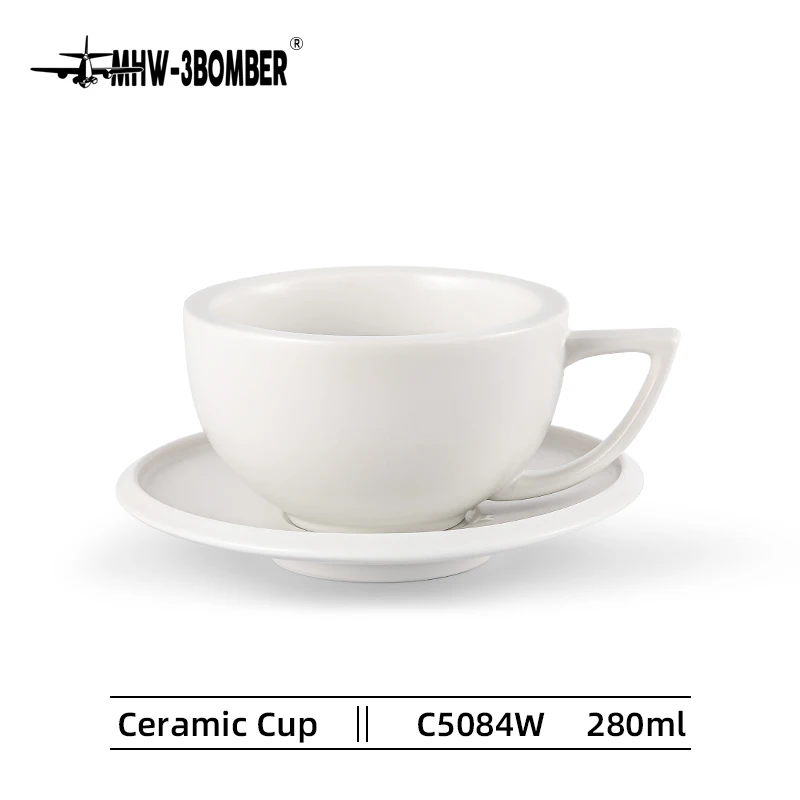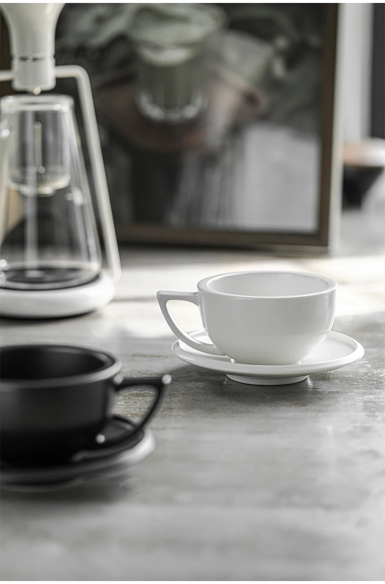☕ كوب قهوة سيراميك 280مل مع طبق – تصميم شيك لعشاق القهوة واللاتيه آرت