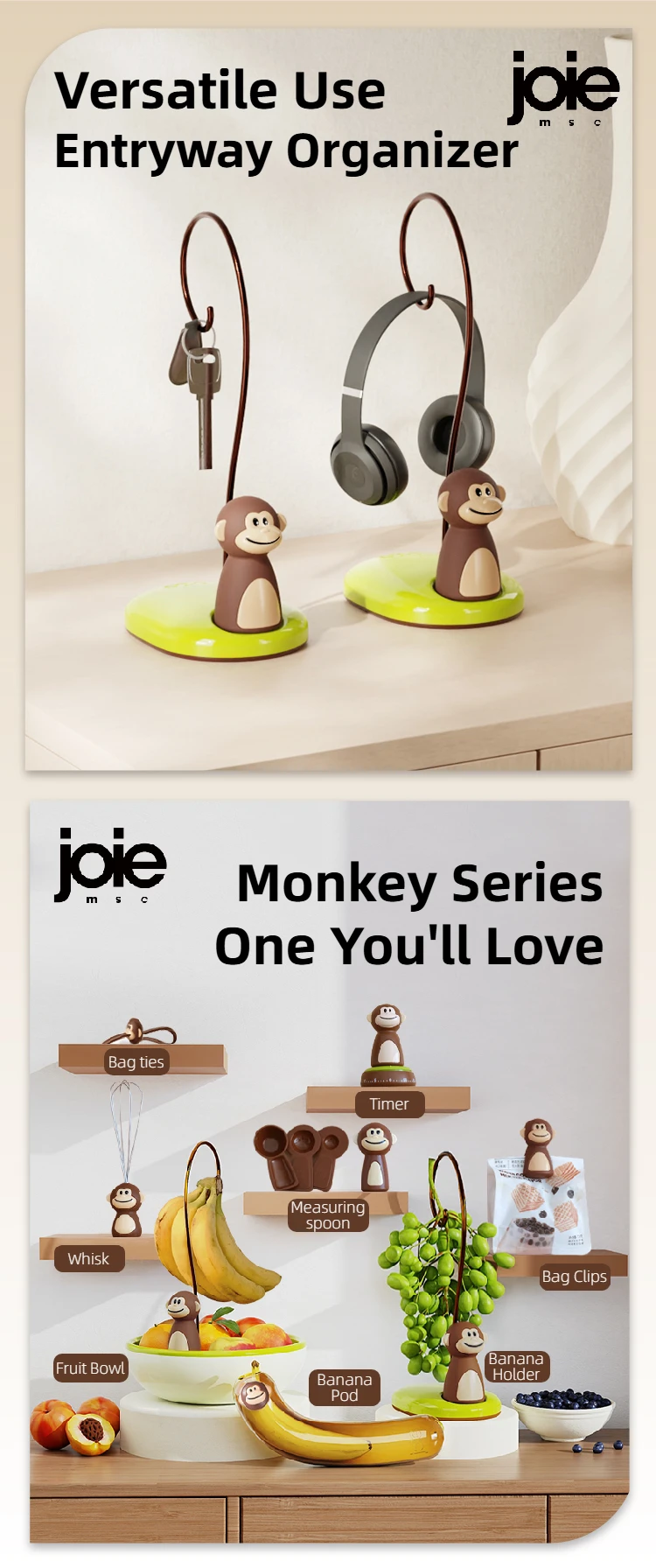 🍌 حامل موز Joie MSC على شكل قرد – طبق فواكه عملي وديكوري | تصميم إبداعي يجمع بين الفائدة والذوق