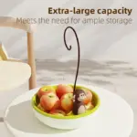 تصميم ذكي يجمع بين حامل للموز بخاصية التهوية + طبق كبير للفواكه أو الحلويات ، بسعة تصل إلى 10 تفاحات أو ما يعادلها من الفواكه .