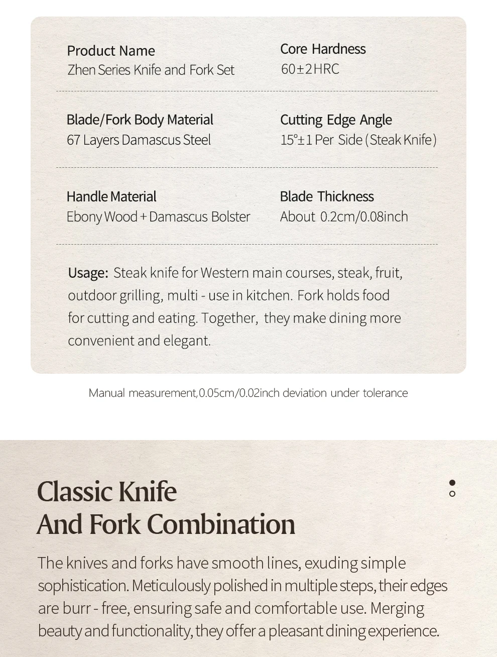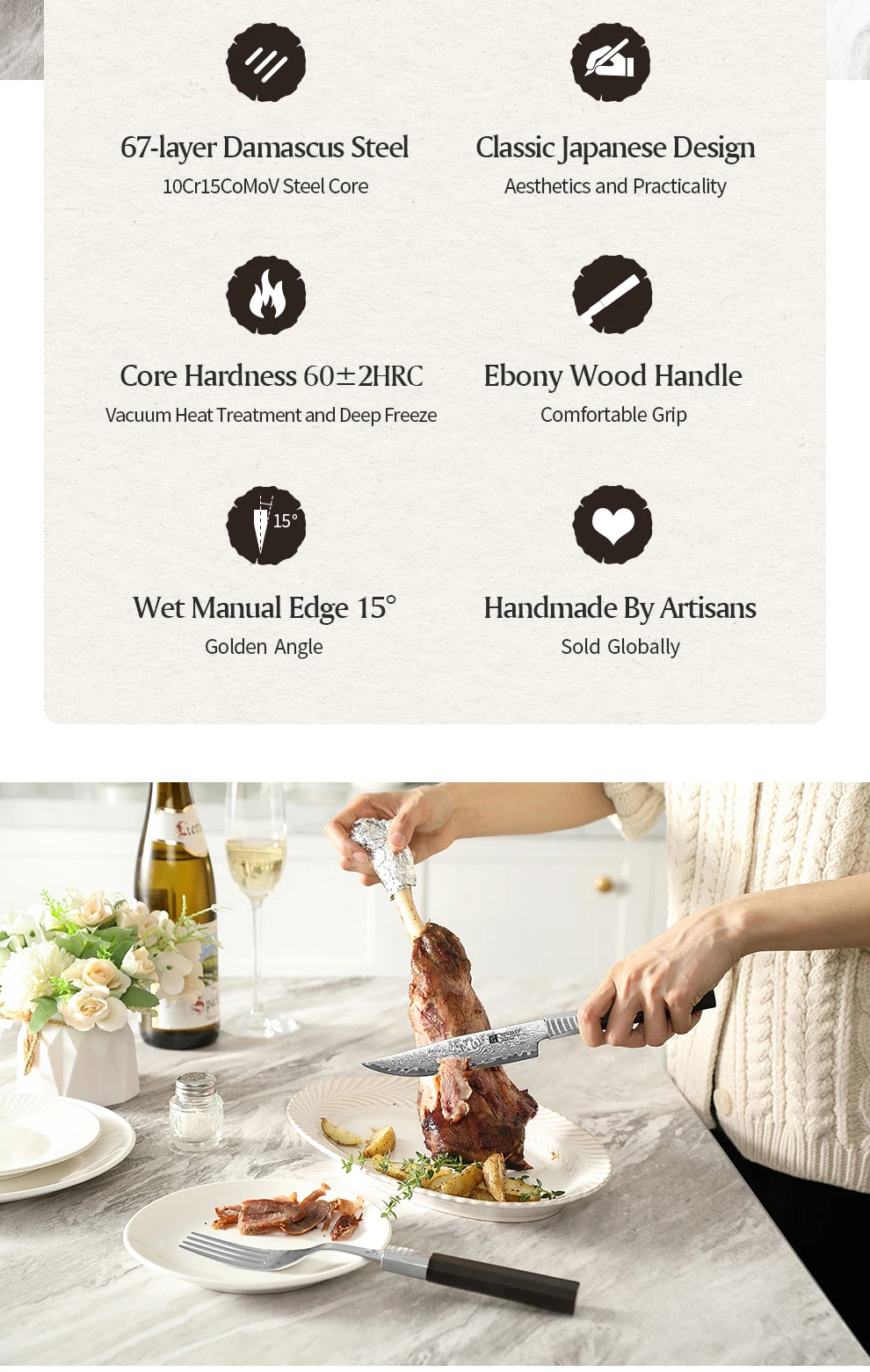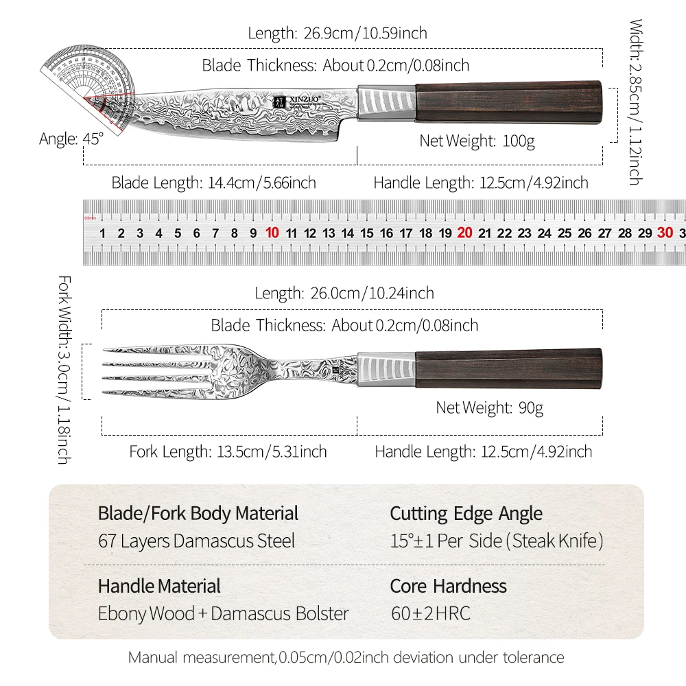 استمتع بأدوات رائعة بين القوة والجمال مع هذا الطقم المميز عالي الجودة من دمشق متعدد الطبقات ، حيث يحتوي على كل عنصر على 67 فولاذية دقيقة من النوع 10Cr15CoMoV .
