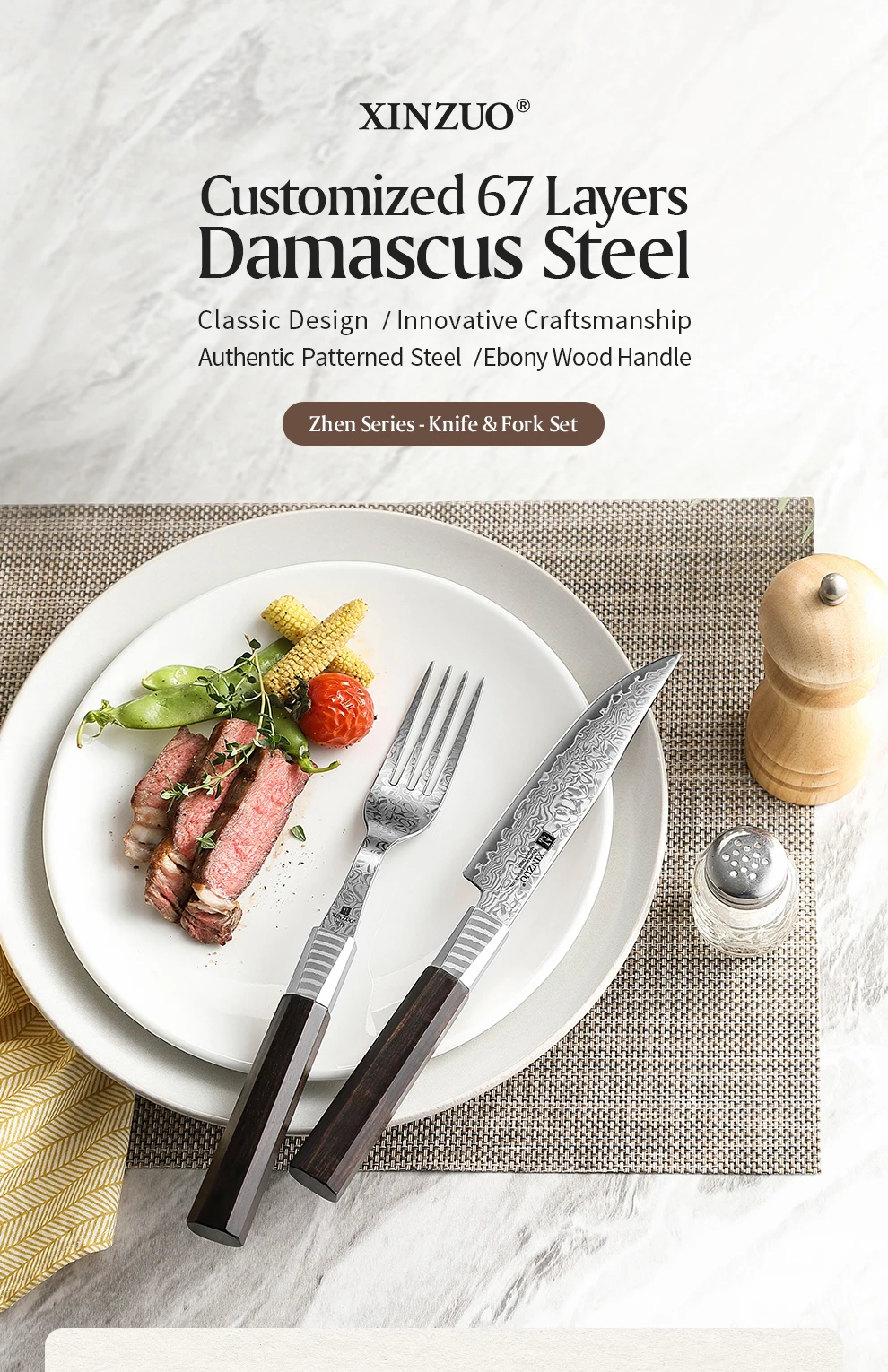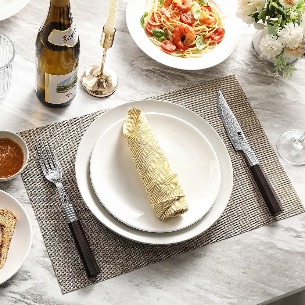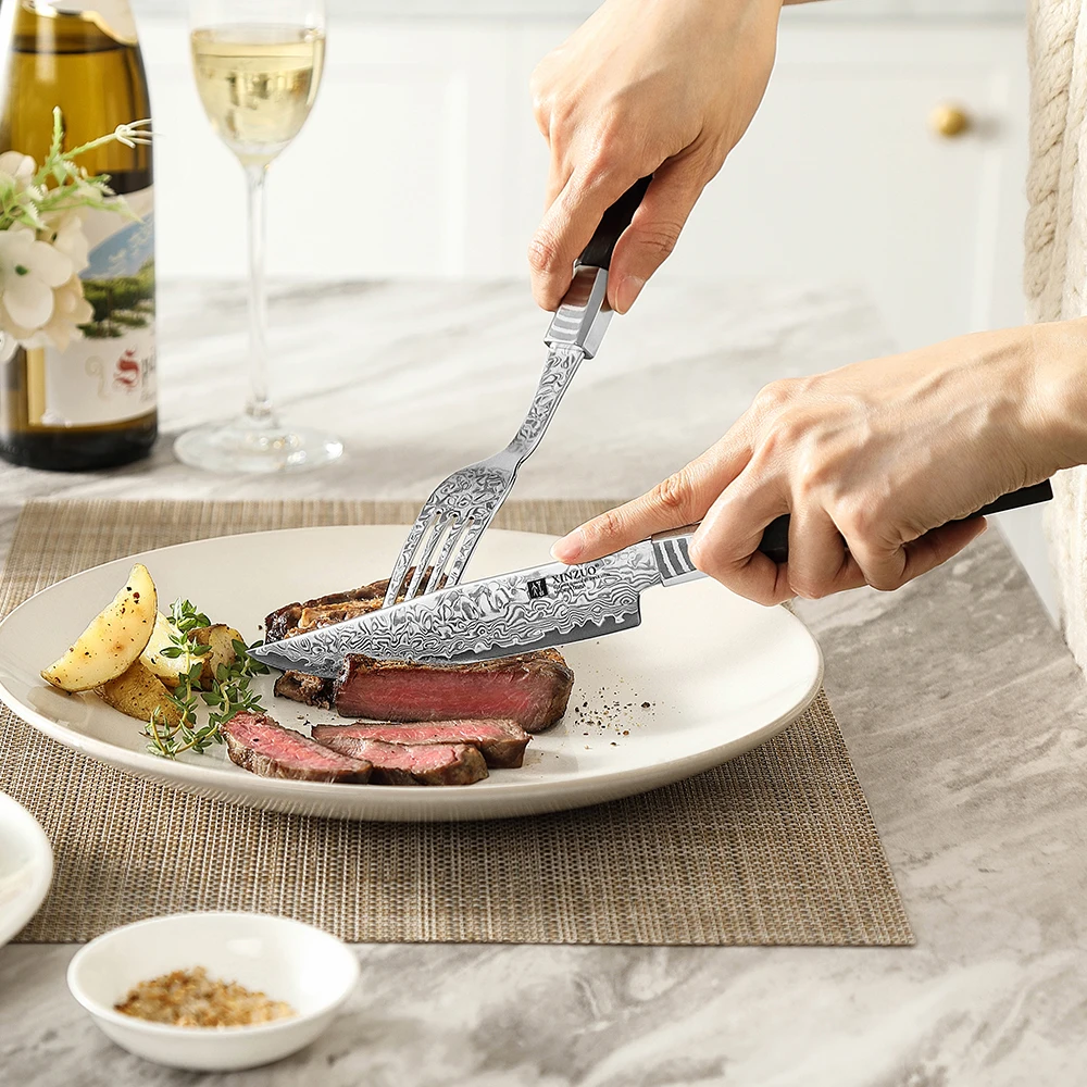استعد للمشاركة في تجربة الطاولة لديك إلى مستوى جديد تماما! 💫 هذا الطقم الفخم من أدوات المائدة المصنوعة من الدمشقية ، صُنع من 10Cr15CoMoV بـ 67 ، مما يجعل من أسوأ الخيارات اللي تفضل كل بيت يحب التميز والأناقة.