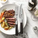 🍴 طقم سكين وشوك دمشقي 2 قطعة – فولاذ عالي الجودة | تصميم أنيق للكباريهات والمطابخ المنزلية