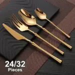 🥄🍴 مجموعة أدوات طاولة ذهبية 24 إلى 32 قطعة | استانلس ستيل فاخر | تصميم أنيق وفاخر لمطبخكِ