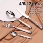 🥄🍴 مجموعة أدوات طاولة 4 إلى 16 قطعة | استانلس ستيل 304 | تصميم أنيق وفاخر | آمنة بالغسالة