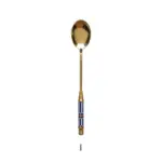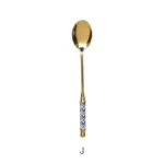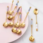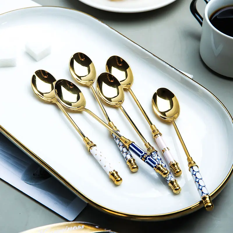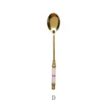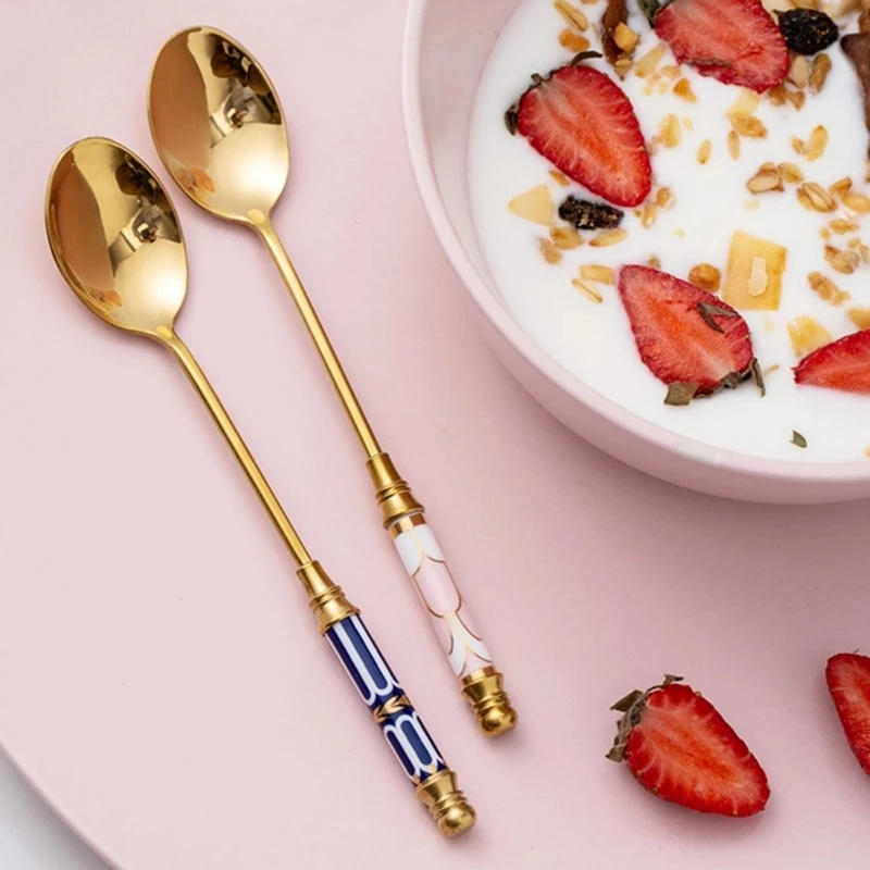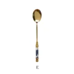 🥄 ملعقة حلويات فاخرة من الاستانلس ستيل – طلاء ذهبي مع لمسة سيراميك | تصميم أوروبي أنيق لتقديم القهوة، الشاي، الكيك والآيس كريم