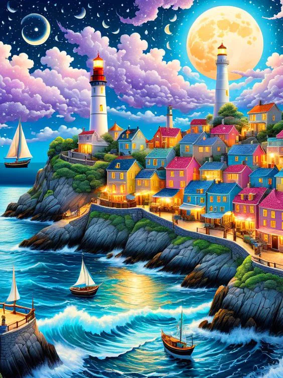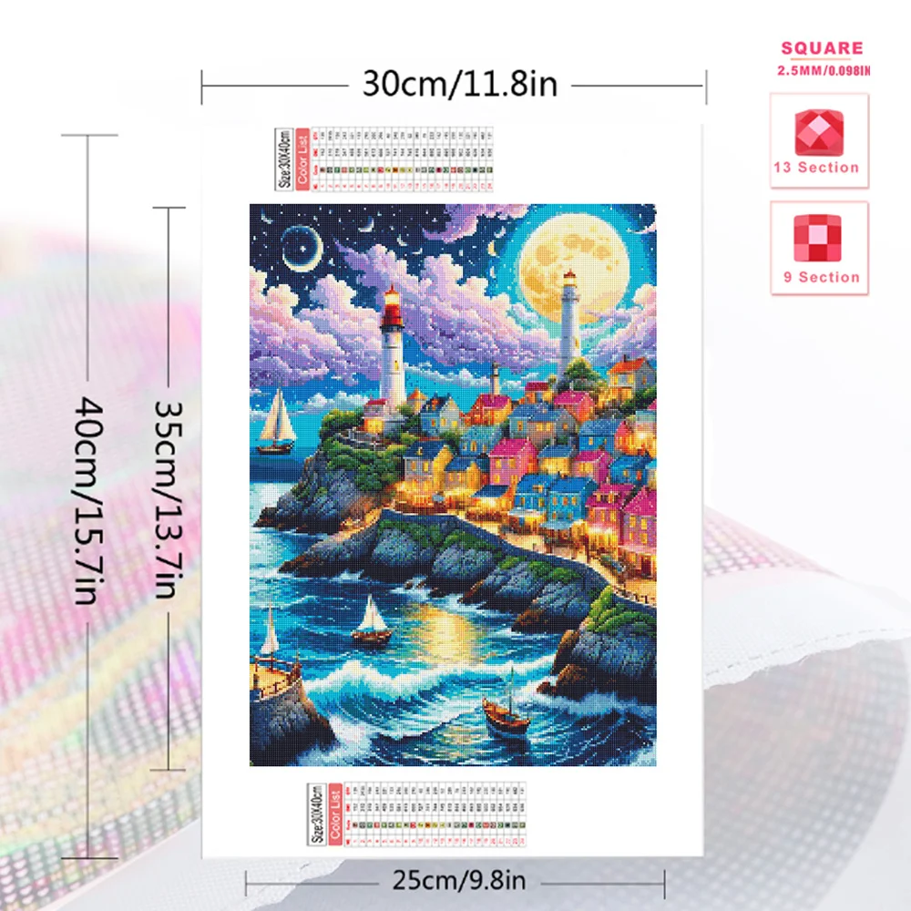 Evershine، منظر طبيعي بحري، لوحة مدينة، منارة، مربع كامل، منزل