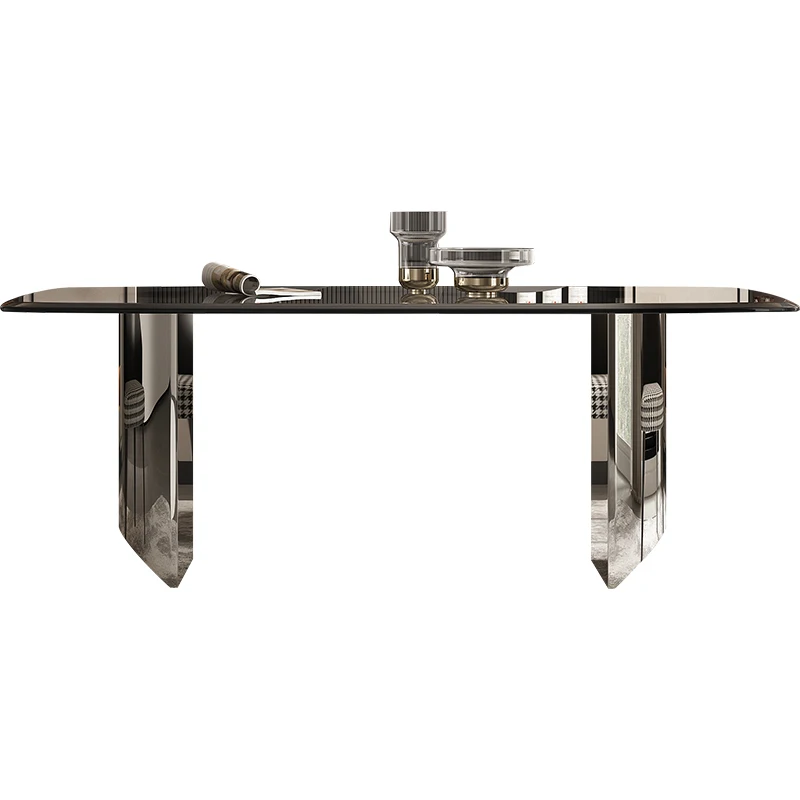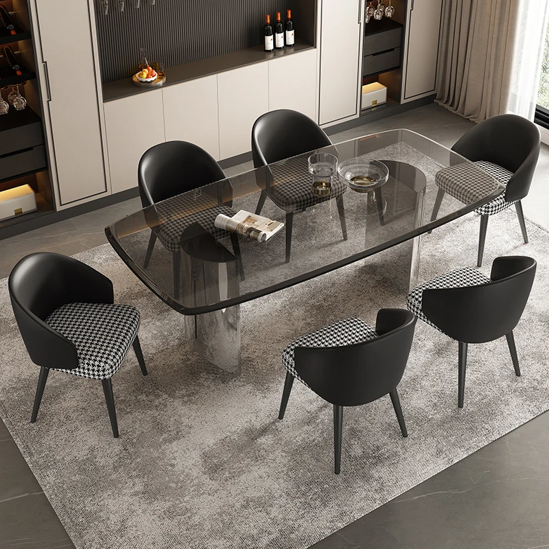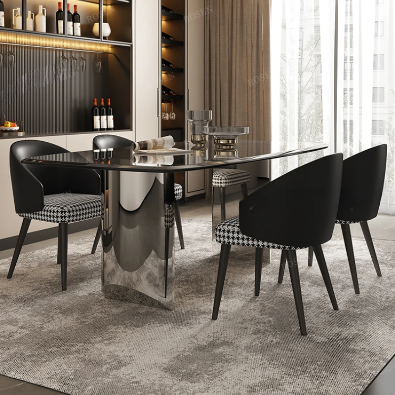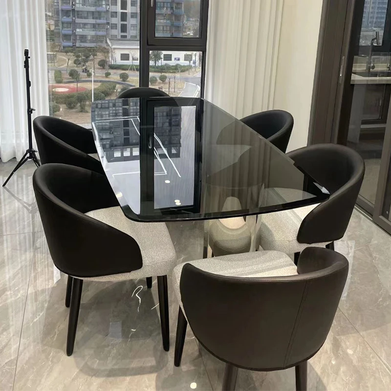 طاولة طعام فاخرة بتصميم إيطالي عصري، تجمع بين الأناقة والبساطة في آن واحد. تتميز بسطح زجاجي عالي الجودة مع قاعدة خشبية متينة، مما يجعلها تحفة فنية تزين أي غرفة طعام أو مطبخ عصري.